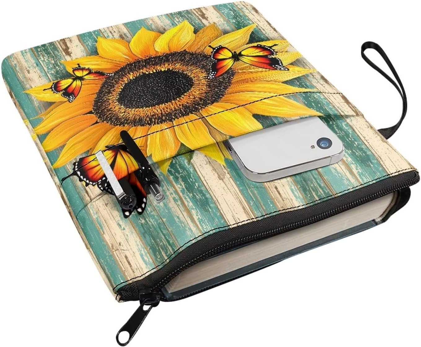 Materiale durevole: questa copertina del libro è realizzata in materiale poliestere, che protegge il tuo libro dalla polvere e dalla rilegatura; il tessuto è lavabile a mano e la fodera nera nella copertina del libro impedisce che i libri e altri oggetti vengano macchiati, usurati o sporchi. Misura adatta: la dimensione della copertina del libro è di ca. 29 x 22,1 cm (L x L), adatto per la maggior parte dei tascabili, quaderni, riviste e libri di testo; design leggero e sottile che si adatta facilmente allo zaino, alla valigia, alla valigetta mentre esci o viaggi.,Tasca extra: la copertina del libro con tasca frontale è l'accessorio perfetto per gli amanti dei libri; La tasca anteriore è il luogo perfetto per riporre oggetti come penne, matite, cellulare, cuffie, foglietti adesivi, ecc. Sicuro e portatile: la copertina del libro è dotata di una cerniera liscia che ti consente di trasportare il tuo libro in modo sicuro e pulito senza alcun danno. C'è anche un cinturino da polso sullo scaffale, che è facile da trasportare e da cui accedere durante i viaggi.,Design elegante: c'è sempre un design unico per te. Vari motivi personalizzati, delicati ed eleganti, come fiori, animali, galassia, tie-dye, arcobaleno, marmo, ecc. Motivo stampato, non facile da sbiadire.