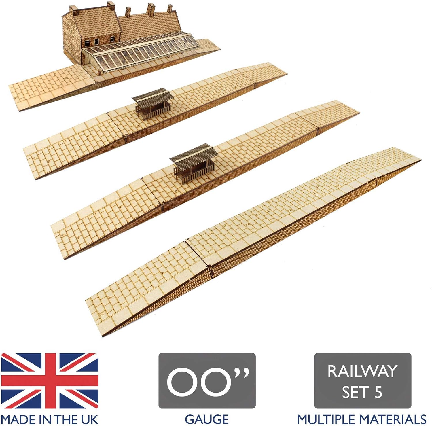 DIVERSI MATERIALI IN SCALA 00 - Realizzati in MDF da 2mm e 3mm e compensato da 1mm per dettagli esterni; tutti in scala da modellismo 00 SET STAZIONE FERROVIARIA - Scegli tra una gamma di diversi set per Stazione Ferroviaria della War World Scenics SISTEMA STAZIONE FERROVIARIA - Parte della nostra vasta gamma di pezzi in MDF per una stazione ferroviaria completa VARI PRODOTTI - Scegli tra una gamma di set per stazione ferroviaria con l’edificio della stazione, banchine, ponti pedonali e sottopassaggi SPEDIZIONE TRACCIATA - Tutti i nostri prodotti sono mandati con Spedizione Tracciata. Risparmia sulle spese di spedizione con ordini multipli!