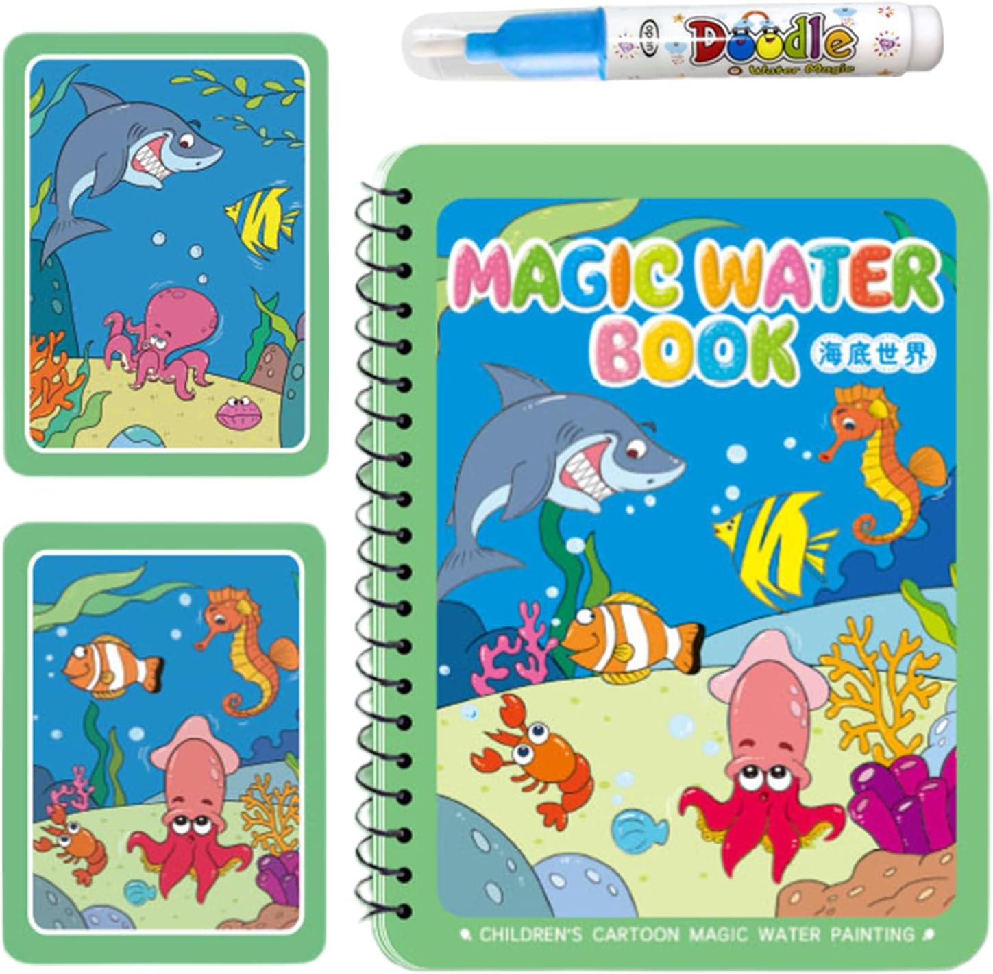Keep your little entertained and learning with this water pen book set designed for ages 1 to 3 providing a - way to explore drawing colouring and creativity without the worry of ink stains or paper waste Each book features reusable pages that come to life with water letting draw reveal pictures and start over again once dry making it ideal for long car rides quiet time or educational play The included refillable water pen is easy to grip and perfect for small hands helping develop fine motor skills hand-eye coordination reusable and colour recognition as your child paints with Compact lightweight and designed for travel this toddler water book set is great for on-the-go fun whether you're heading to a restaurant holiday or simply need a calm indoor activity for your young learner A perfect birthday or Easter basket stuffer this water drawing set an engaging screen- toy option that supports creativity cognitive growth and play for preschoolers and