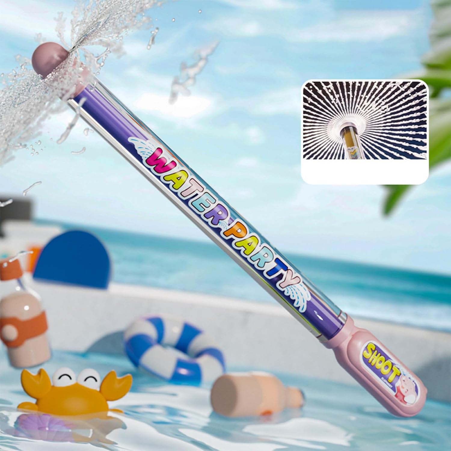 Fun Firework-Inspired Design: Bright, colorful, and shaped like a firework, this water soaker brings excitement to water play and sparks imagination in kids of all ages. Pull-Out Pump Action for Easy Use: Simple for to operate with a pull-and-push mechanism that sprays water far and wide—perfect for little hands and active fun. Lightweight and Portable Build: Crafted from durable, child-safe materials that are easy to carry and use at the pool, beach, backyard, or playground. Ideal for Group Activities and Parties: Great for summer games, outdoor parties, and family events where kids can enjoy endless water play together. Safe and Gentle for Young Children: Designed for and preschoolers with rounded edges and easy , making it a worry-free summer for parents.