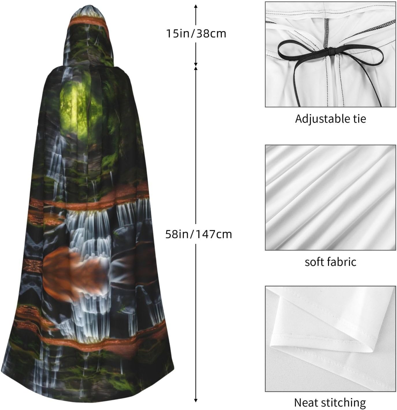 Materiale e design a cascata: il tessuto è realizzato in 100% fibra di poliestere (poliestere) tessuto di alta qualità, morbido e confortevole. Il design con cappuccio non è solo elegante e bello, ma fornisce anche calore extra alla testa e al collo. Caratteristiche del prodotto: il poncho oversize con cappuccio è un poncho con cappuccio senza lacci, senza cerniera, comodo realizzato in tessuto lungo, resistente e non prurito. Dimensioni del prodotto: il cappello misura 38,1 cm di altezza, 147,3 cm di lunghezza, 154 cm di larghezza. Adatto per occasioni: feste di Natale, feste di Halloween, feste in costume, celebrazioni pagane. Ideale per travestimenti, cosplay, costumi da scena, streghe, vampiri, royalty, scelta regalo perfetta per amici o familiari. Persone applicabili: adulti, unisex