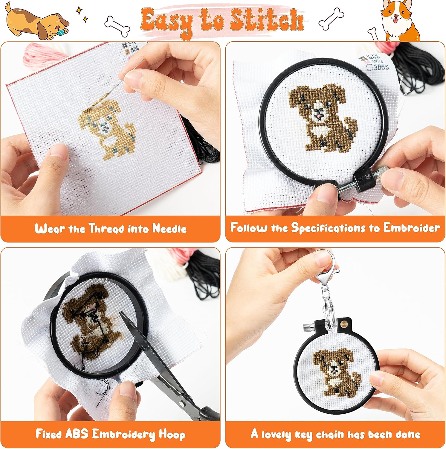Kit per punto croce: riceverete 10 pezzi di punto croce timbrato su animali da 12 x 12 cm, un pacchetto di filo da ricamo, 5 portachiavi, 5 aghi, un infila ago, 5 telai da ricamo in ABS e un manuale di istruzioni (lingua italiana non garantita). Facile da soddisfare le vostre esigenze di apprendimento ricamo. Facile da usare: le istruzioni nel kit da cucito a punto croce ti mostreranno come farlo bene. Semplici passi, adatti per principianti e bambini per iniziare il loro primo lavoro a punto croce. Modello classico: questi bellissimi kit per punto croce sono splendidamente stampati con diversi motivi di cuccioli in colori vivaci. Migliora le tue abilità manuali: il punto croce tradizionale può liberare il cervello e le mani dei bambini, migliorare la concentrazione e la flessibilità dei bambini. Suggerimenti: poiché i nostri prodotti contengono parti affilate, i bambini devono essere accompagnati da un adulto quando li usano per evitare lesioni.