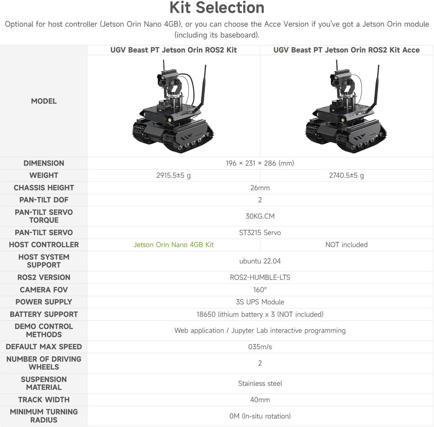 | Riferimento produttore | UGV Beast PT ROS2 Kit Acce (EN) |