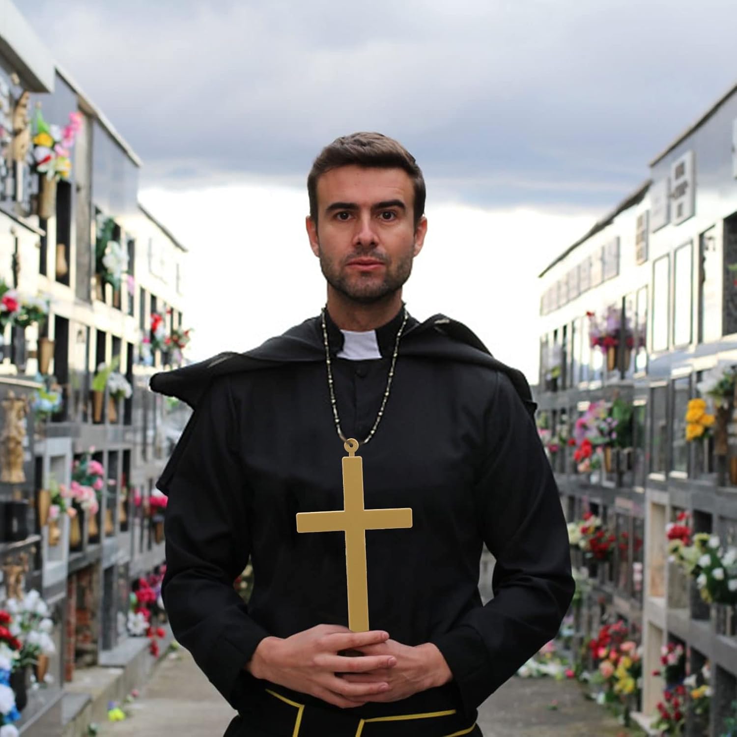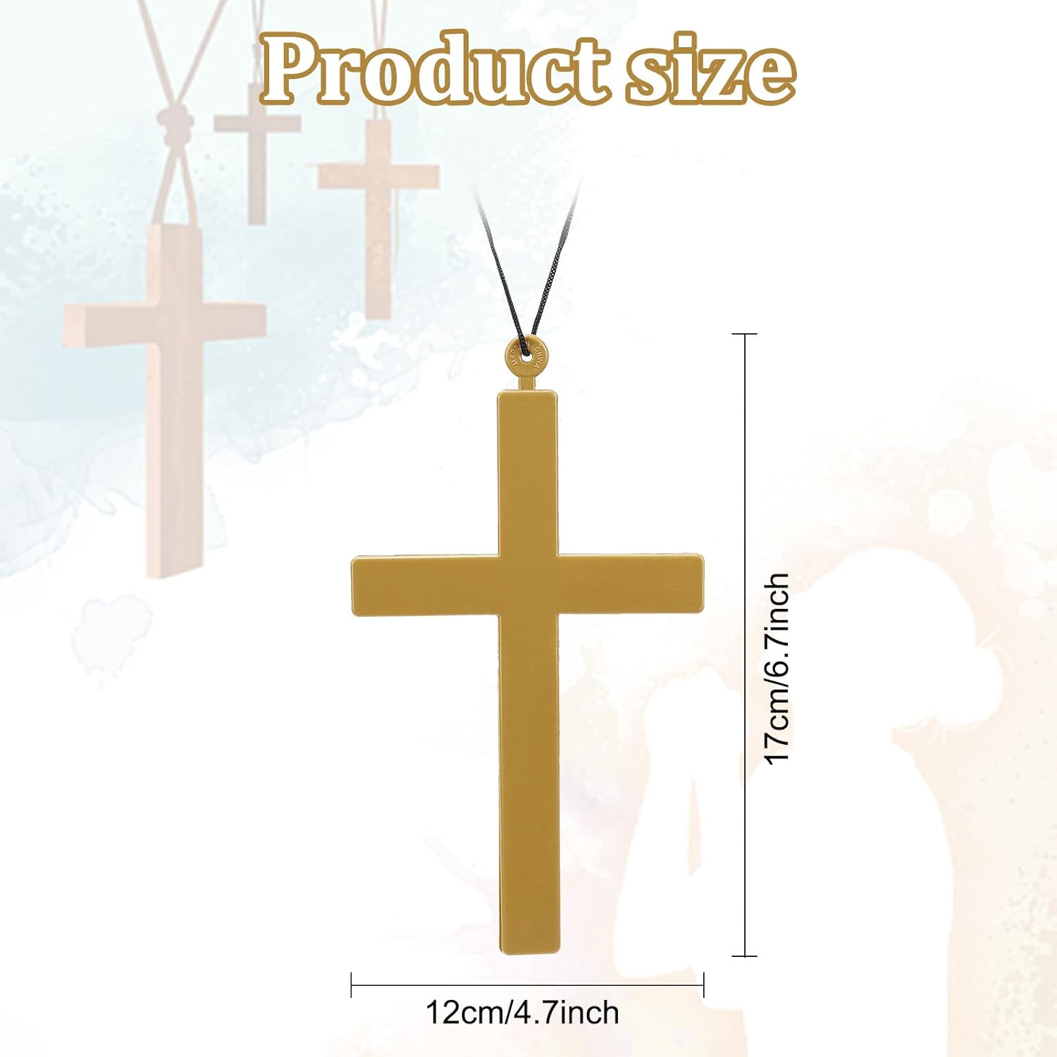 Contenuto della confezione: set di 3 pezzi di croce grande, puntelli collana croce dorata, con corda nera, per collana o appendere, suora vestire Materiale: questa croce prop è lunga 17 cm e larga 12 cm. Queste croci sono fatte di plastica cava. Una singola croce pesa 30 grammi ed è leggera. Adatto per: questo accessorio per adulti è perfetto per monaci, sacerdoti, monaci, papi, suore e molti altri costumi creativi! Adatto per uomini o donne Occasioni applicabili: molto adatto per feste di Halloween, feste in costume, spettacoli teatrali, feste in maschera e altre feste a tema, molto adatto per giochi di ruolo, dramma, Halloween, rievocazioni, ecc. Come buon regalo: questo è un ottimo regalo per coloro che amano giocare di ruolo o vestirsi da monaci e preti, dando loro un abito di personalità esagerato ed elegante.