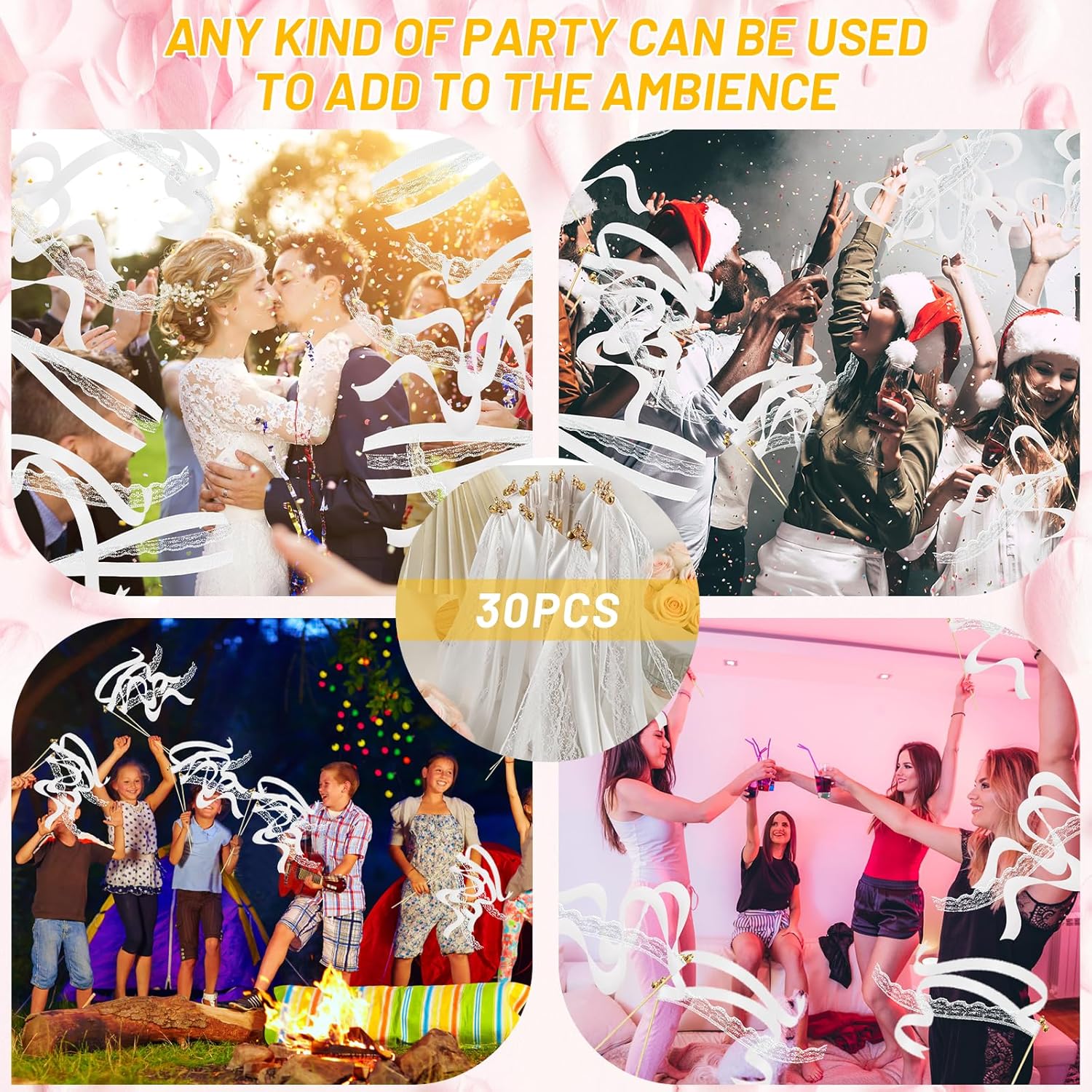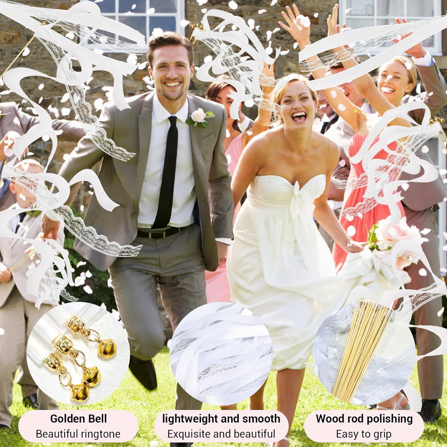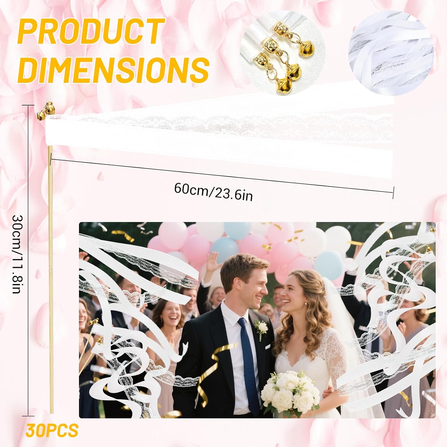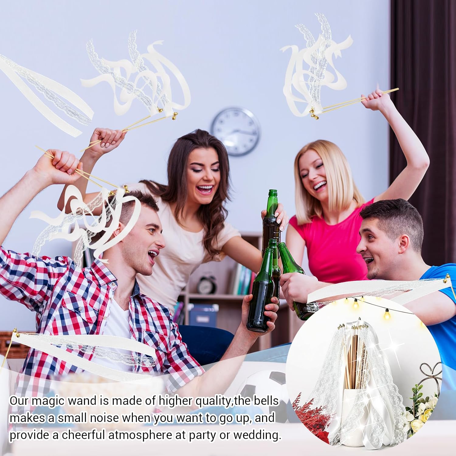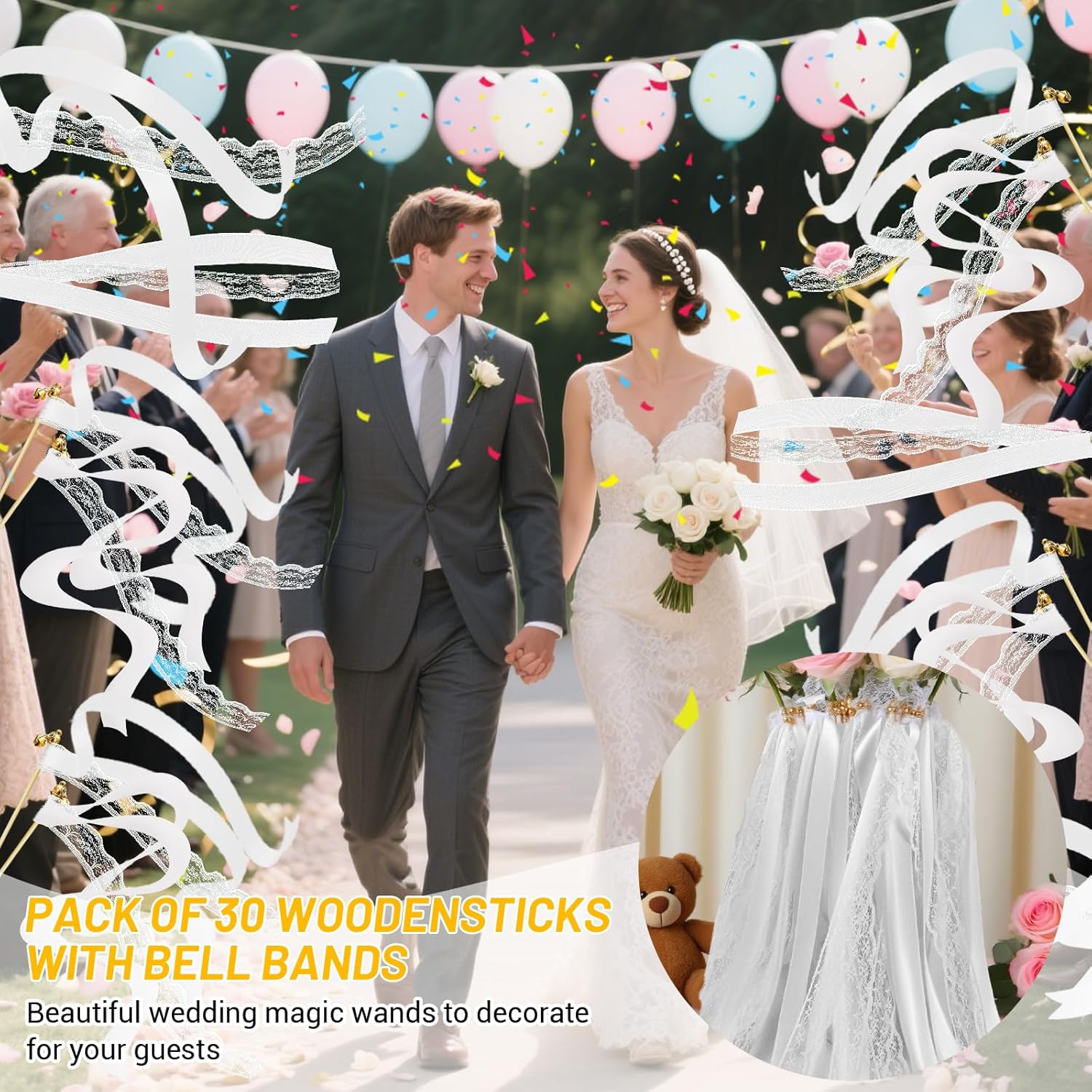 30 bastoncini da parete per matrimoni. Ogni nastro è composto da 3 nastri di seta di alta qualità, 2 campane di alta qualità e 1 bastone di legno. La parte superiore dei bastoncini di nastro è dotata di piccole campanelle, le belle campane possono portare un buon umore, le bacchette bianche simboleggiano purezza e pace, semplici e belle, creano una romantica e festosa. atmosfera Materiale di qualità: le bacchette da matrimonio sono realizzate in pizzo di alta qualità, materiale morbido e delicato. Le bacchette magiche per matrimonio sono realizzate in legno naturale con superficie liscia e senza sbavature, la mano non è danneggiata e comoda da tenere. Buon effetto lucidante sulla superficie della campana, lisce; e eleganti nastri di pizzo e campanelle creano romanticismo per eventi di festa o matrimoni Design in pizzo più elegante: i nostri nastri hanno un design in pizzo, molto elegante, bello e unico. Le bellissime e uniche fasce riflettono la luce, grazie al suo peso leggero e alla facilità d'uso, l'asta magica in seta è adatta per grandi e piccini. Sia per spettacoli di danza, fotografia o giochi spontanei è rapidamente pronto all'uso e rende ogni movimento un punto di forza accattivante Adatto per tutti i tipi di feste: queste stelle filanti per matrimoni sono ideali per matrimoni, feste nuziali, compleanni per bambini, anniversari, feste, Natale, feste, feste a tema, Halloween, baby shower, spettacoli e molto altro ancora. Sono ideali per interazioni intime, spettacoli e ricevimenti, per dare un tocco di magia alle vostre giornate speciali Il miglior regalo: il nastro decorativo per matrimoni è un regalo perfetto per la sposa e lo sposo, o come regalo per i vostri amici. Il traliccio non solo aggiunge colori romantici alla decorazione di nozze, ma offrono anche un divertimento interattivo; questi nastri sono anche squisiti oggetti di scena per giochi o celebrazioni