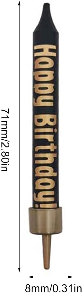 Materiale di qualità perfetta: le candele di compleanno sono realizzate in cera di alta qualità, ecologiche, caratterizzate da un lungo tempo di combustione, ideali per la decorazione di torte e comode da usare. Dimensioni adatte: adatto per la maggior parte delle torte di compleanno. La dimensione di una singola candela è di circa 71 x 8 x 8 mm. Si prega di considerare una leggera differenza nelle dimensioni a causa della misurazione manuale. Festa di compleanno: accessorio perfetto per festeggiare la festa di compleanno con i tuoi cari, amici, mamma, figlia, nipote o nipote. Regalo invernale: la candela per torta nera e oro è un regalo premuroso per Natale, Capodanno, Halloween, inaugurazione della casa e molto altro ancora. Sono adatti per molte vacanze e occasioni. Cupcake versatili. Queste candele di compleanno nere e oro aggiungeranno un'atmosfera allegra a qualsiasi festa di compleanno. È anche un'ottima idea per Natale, Ringraziamento, anniversari.