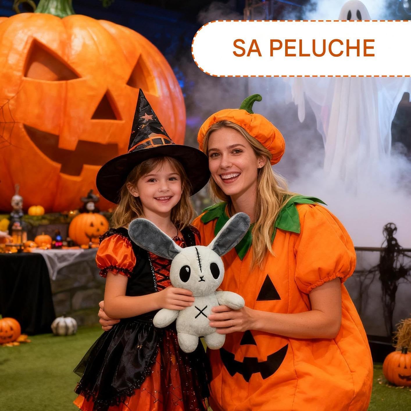 Morbido e confortevole: questo coniglio di peluche offre un comfort duraturo e un'accogliente esperienza di coccole con le sue superfici lisce anti-pelucchi e la consistenza morbida e delicata sulla pelle, perfetta per rilassarsi a casa o in viaggio. Migliora i momenti di riposo con la sua morbidezza rilassante. Eccellente soluzione regalo: progettato per trasmettere emozioni e rafforzare le amicizie, questo coniglio di peluche è un accessorio preferito per le attività di legame genitore-figlio. Offre un valore duraturo come oggetto decorativo e come regalo adatto per occasioni come le riunioni di Halloween. Incantesimo festivo: il peluche di coniglio regala un'atmosfera festosa a tema Halloween, arricchendo l'atmosfera stagionale coinvolgente ideale per la decorazione delle feste domestiche. Si abbina perfettamente alle decorazioni natalizie ispirate ai fantasmi per creare un'atmosfera autentica e celebrativa durante feste a tema o riunioni di famiglia. Creatività fatata: progettata sul tema del coniglio fatato, questa trapunta stimola la creatività durante il gioco; il suo aspetto di fusione tra fantasia e infanzia e i dettagli del viso finemente realizzati lo rendono ideale come regalo o elemento decorativo da collezione in spazi creativi Reversibilità in inglese: molteplici applicazioni: progettato per migliorare l'estetica della stanza, il coniglietto decorativo ha una tavolozza grigio-bianca neutra che si fonde senza sforzo con molteplici stili di arredamento. Usalo come accento visivo su una libreria o vicino al letto per elevare l'armonia del tuo spazio abitativo.