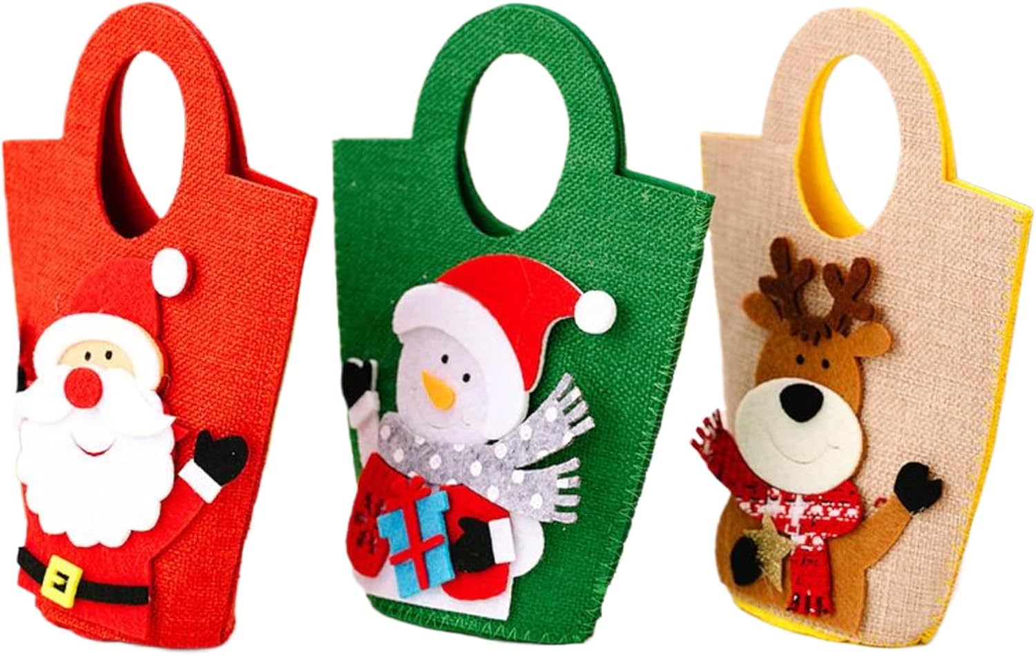 Formato pratico: progettate per adattarsi perfettamente alla forma di dolciumi e snack, queste borse festive uniscono compattezza e leggerezza. Sono facili da trasportare e distribuire durante gli eventi di fine anno. Molteplici usi: progettati per essere appesi agli alberi di Natale o ai caminetti, questi sacchetti consentono un facile accesso alle prelibatezze migliorando al tempo stesso l'estetica delle decorazioni natalizie, creando momenti memorabili per tutta la famiglia durante le vacanze di Natale. Gestione ottimizzata delle vacanze: con tre sacchetti natalizi inclusi per confezione, questo prodotto garantisce una distribuzione sufficiente, soprattutto nelle famiglie numerose, promuovendo una condivisione armoniosa e creando esperienze gioiose durante gli eventi natalizi. Presentazione elegante per Natale: con i loro colori vivaci e i design natalizi, questi sacchetti per biscotti diventano un'opzione di confezionamento accattivante che migliora l'atmosfera festosa e aggiunge un tocco di fascino ai tuoi dessert durante gli eventi festivi. Resistenza e durata: Realizzati in tessuto non tessuto resistente e riutilizzabile, questi sacchetti di caramelle natalizie garantiscono una presa sicura di dolcetti e regali per le feste, resistendo agli strappi per un uso affidabile durante le celebrazioni festive