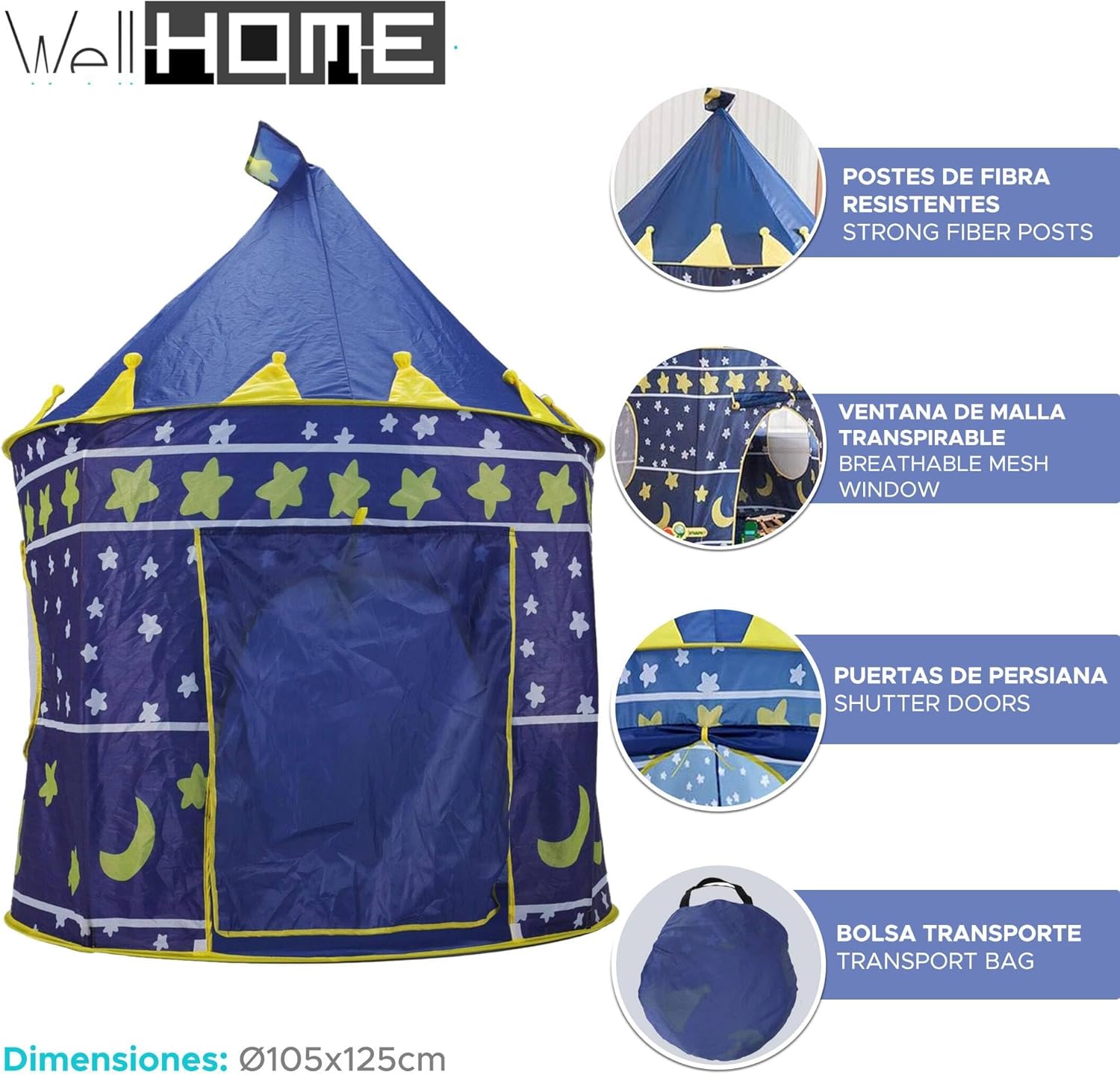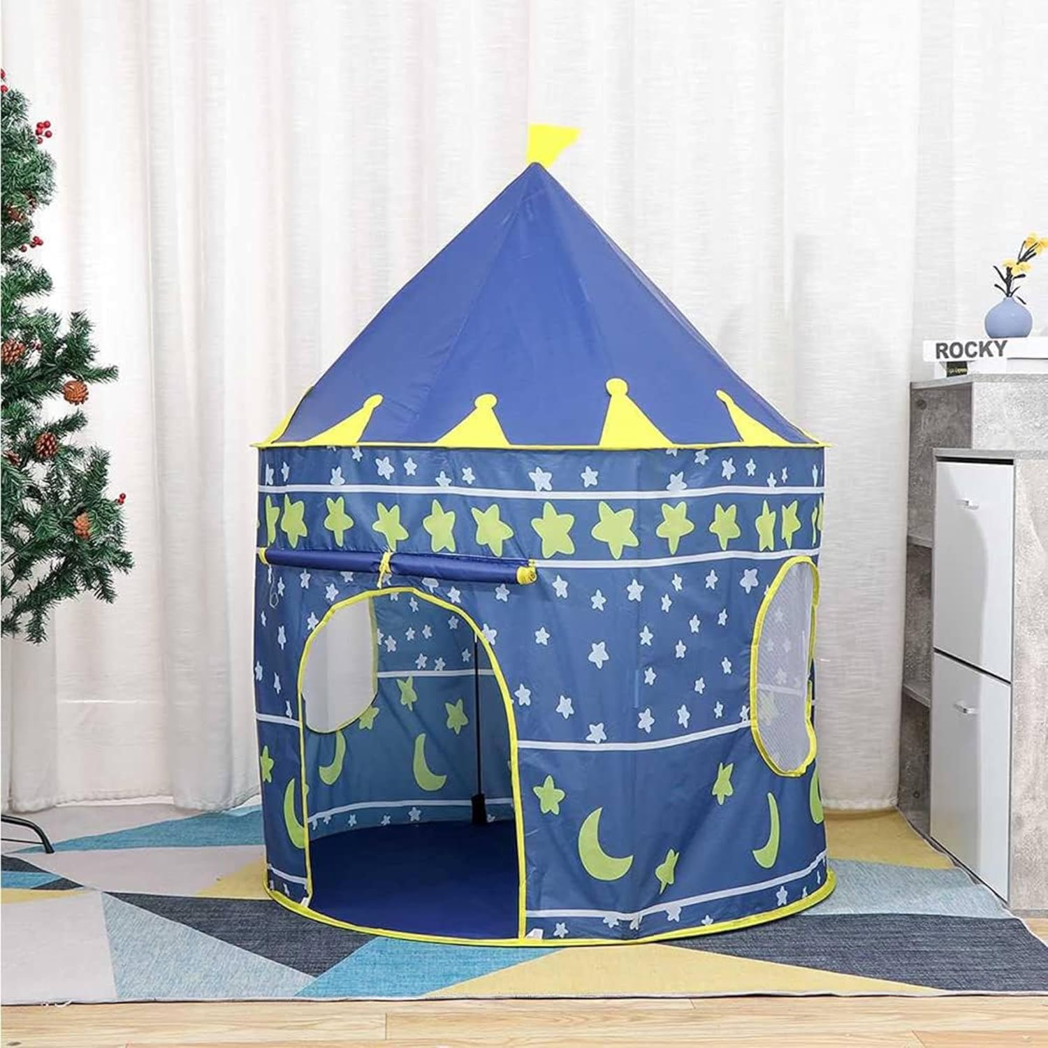 Questa tenda da gioco con castello del cavaliere affascinerà l'immaginazione dei più piccoli e darà loro ore di divertimento. Ha dimensioni di Ø 105 x 125 cm. È lo spazio perfetto per i bambini per creare il proprio regno di fantasia. Realizzata in poliestere di alta qualità, offre durata e resistenza per un uso prolungato. Un elemento ideale per incoraggiare il gioco creativo e l'esplorazione a casa.