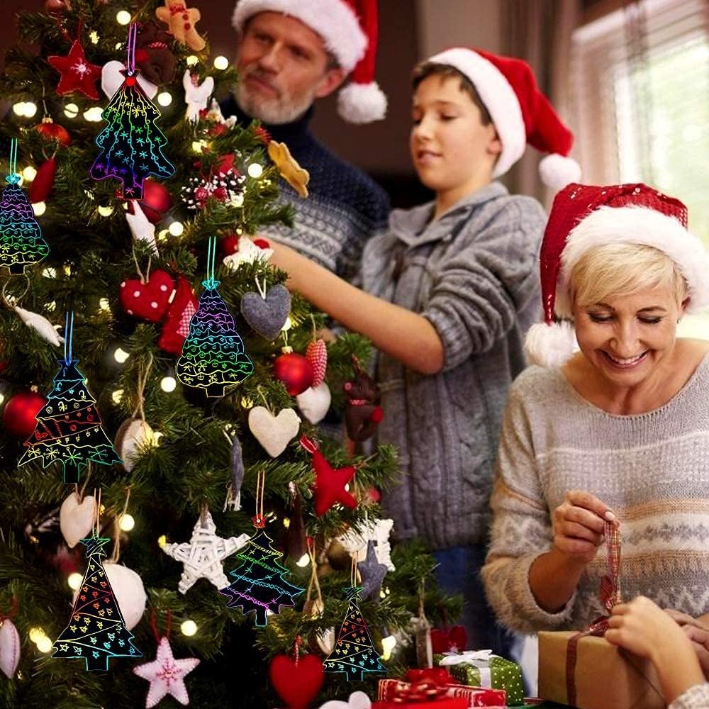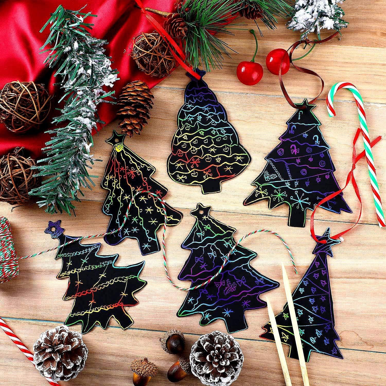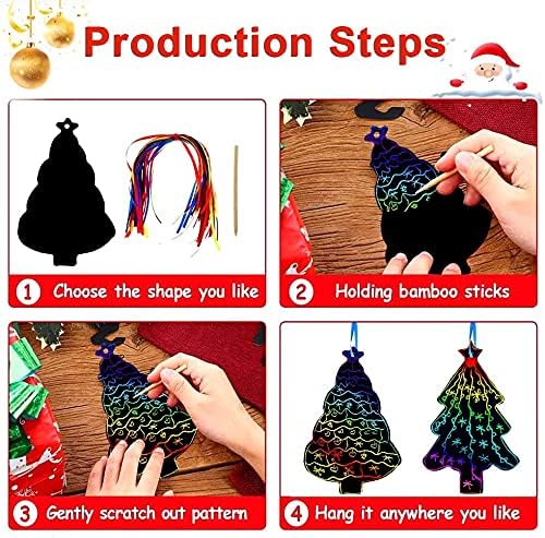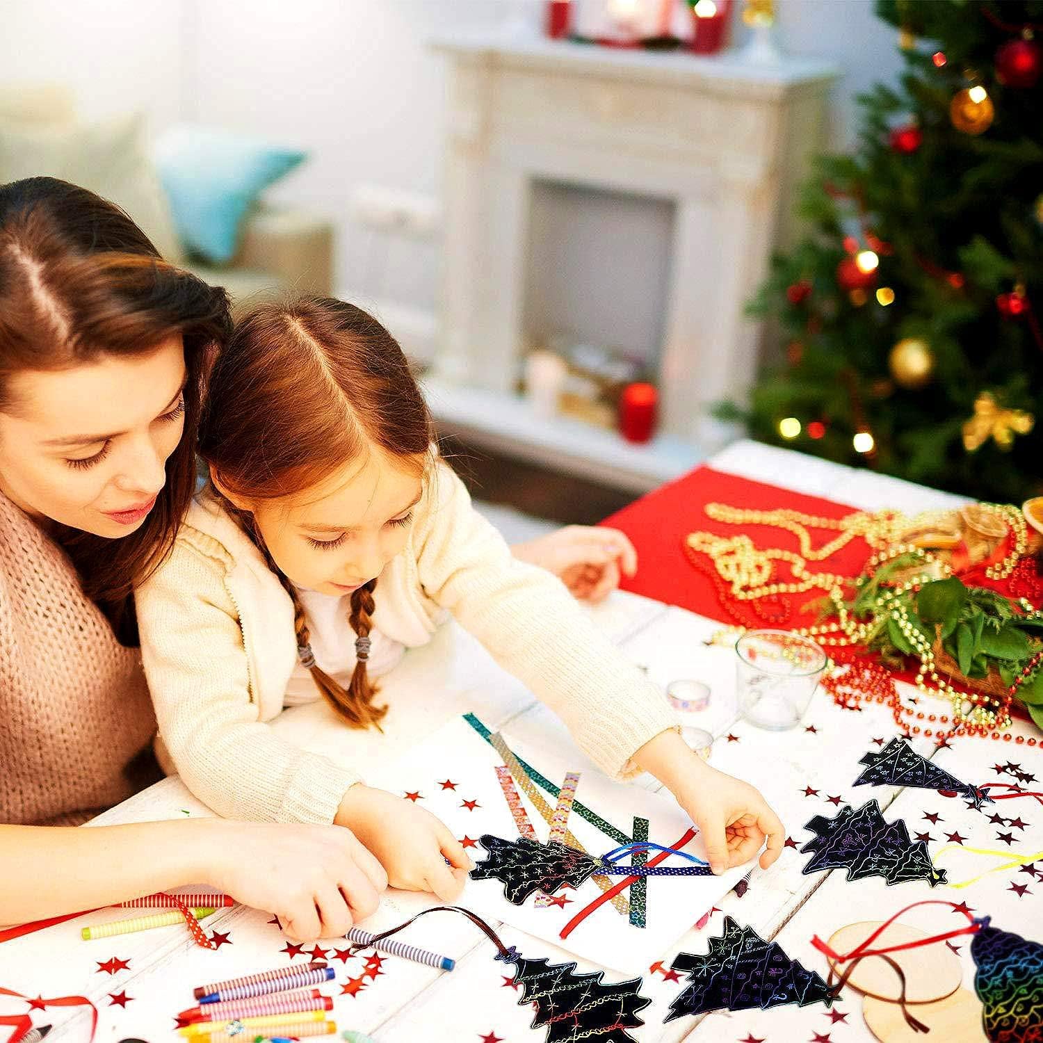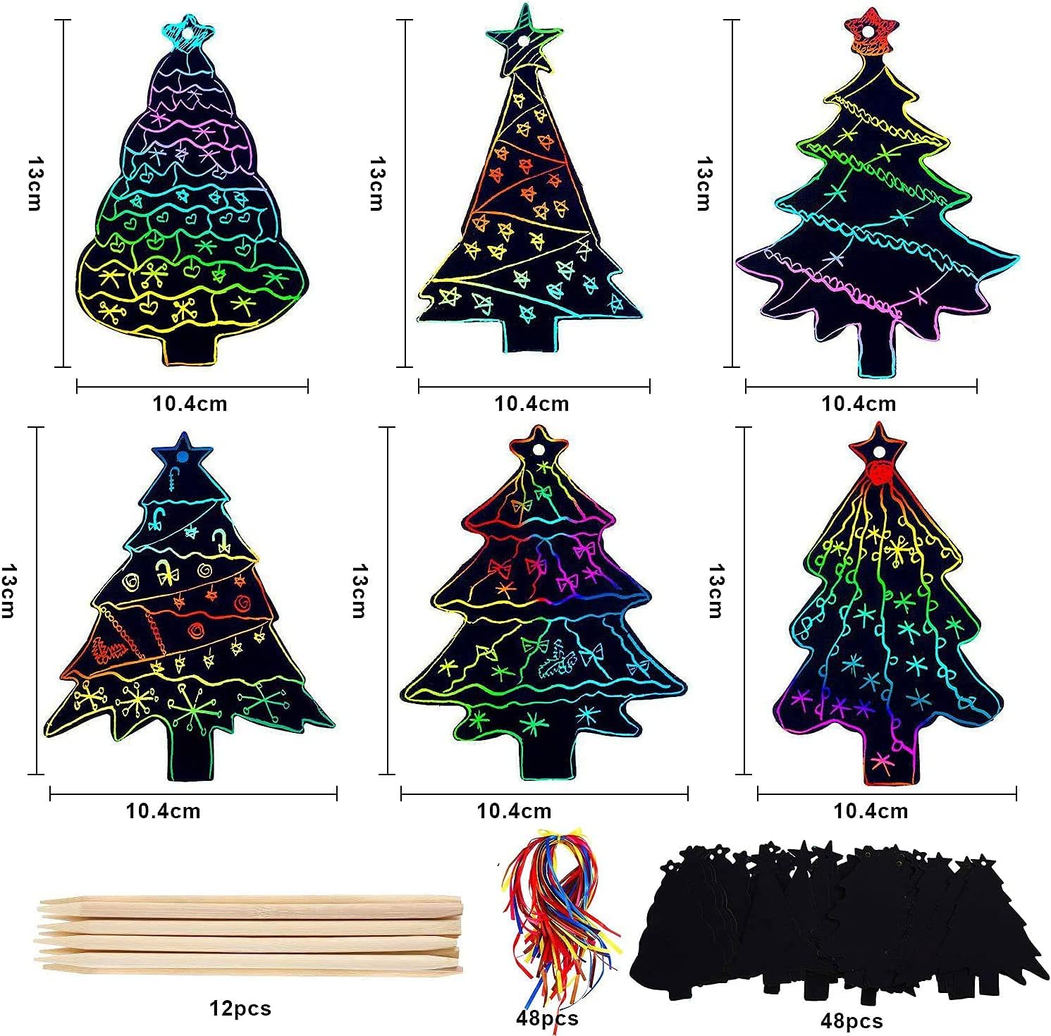 【Alta Qualità】: Il set di gratta e vinci fai-da-te è realizzato in carta per graffi arcobaleno, le penne sono realizzate in legno di alta qualità e il nastro colorato appeso è realizzato in raso resistente. Sono tutti atossici e sicuri per bambini e adulti. 【Natale Gratta e Vinci】 : Totale 108 pezzi, 48 gratta e vinci natalizi (diversi tipi di mini alberi di Natale) con 12 bastoncini di bambù per disegnare i motivi e 48 nastri colorati per appenderli, sufficienti per l'uso a Natale. 【Facile da Disegnare】: Usa un bastoncino di legno per appendere leggermente il rivestimento nero sulla superficie della carta antigraffio, semplicemente usalo per grattare via la superficie nera per creare i motivi che desideri. E puoi usare i colorati nastri di raso per appenderlo come decorazione o piccolo regalo. 【Ampia Applicazione】: La bella carta graffiata arcobaleno può essere appesa agli alberi di Natale. Perfetto per le decorazioni natalizie fai-da-te per i bambini e appenderlo in ogni angolo della festa per aggiungere un'atmosfera più festosa.Ideale per i bambini ai mestieri fai-da-te. 【Il Regalo di Natale Perfetto】: Scratch art bambini può essere usato come regalo di compleanno per bambini o come regalo di Natale,bambini e adulti possono giocare insieme!Puoi appendere Scratch Art Bambini sul soffitto e sull'albero di Natale.