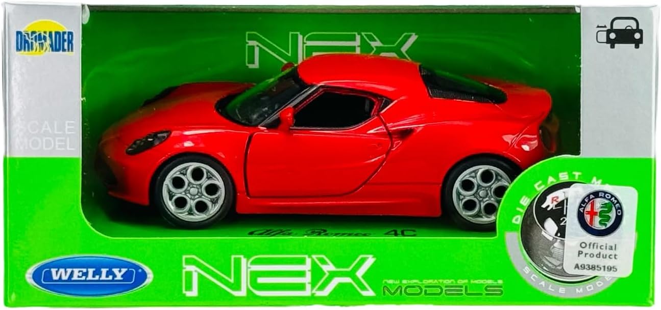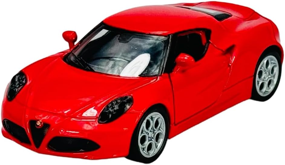 Welly modello auto compatibile con Alfa Romeo 4C Coupé rosso dal 2014 ca 1/34-1/39 Metal Model Auto Die Cast Nuovo in scatola
