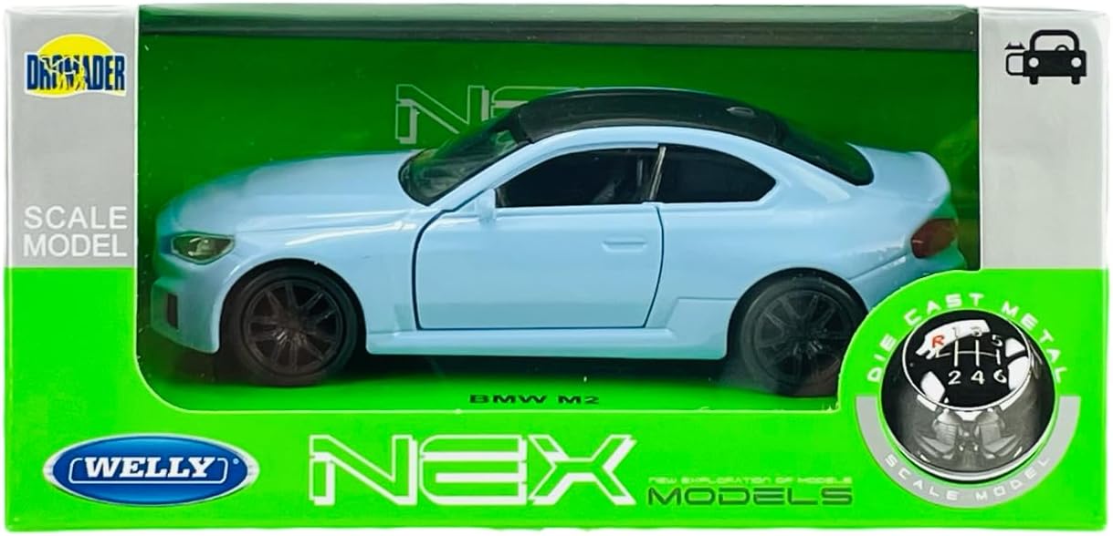 Welly modello auto compatibile con BMW M2 G87 Coupé Blu ca 1/34-1/39 Metal Model Auto Die Cast Nuovo in scatola