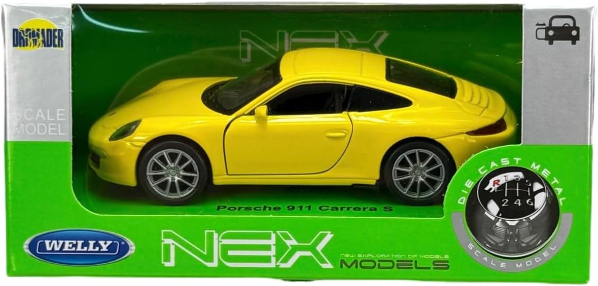 Welly modello auto compatibile con Porsche 911 991 Carrera S Giallo Coupe dal 2011 ca ca 1/34-1/39 Metal Model Auto Die Cast Nuovo in scatola