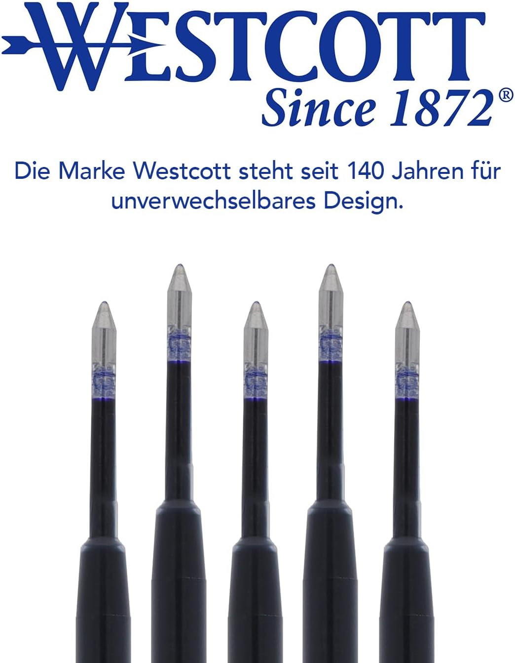 Scrittura fluida: scopri una sensazione di scrittura morbida con l'inchiostro blu ad asciugatura rapida e non lubrificato per una scrittura chiara e professionale. Compatibilità con ISO G2 - Le ricariche sono adatte a tutte le penne gel in formato ISO G2 e offrono prestazioni affidabili in qualsiasi penna. Spessore del tratto M: con uno spessore del tratto di 0,7 mm (M), le mine consentono di ottenere una scrittura chiara e leggibile. Pratica confezione da 5: con questa confezione sarete sempre ben attrezzati, sia in ufficio, a casa o in viaggio. Qualità dal 1872: il marchio Westcott da 140 anni è sinonimo di prodotti per la casa e l'ufficio con un design inconfondibile e un rapporto qualità-prezzo senza pari.