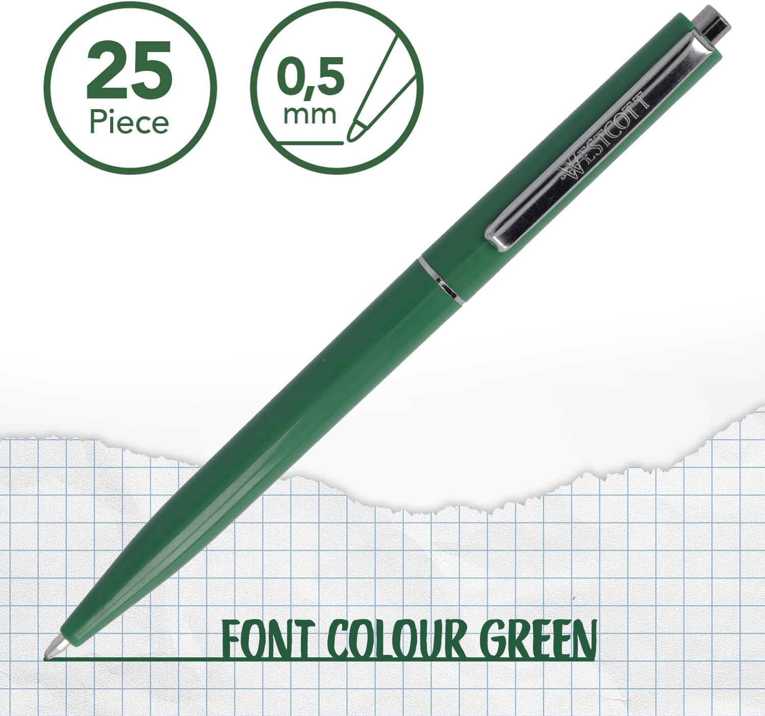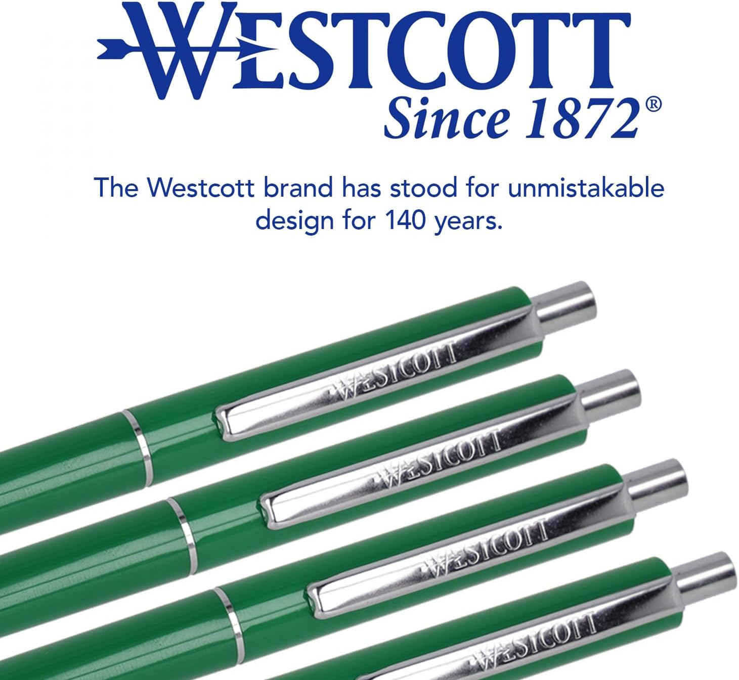 Scrittura precisa: tratto medio (M) e ricarica standard X20 per un carattere lineare e pulito, ideale per l'uso quotidiano. A prova di documenti: conforme alla norma ISO 12757-2, l'inchiostro premium ad asciugatura rapida garantisce una scrittura a prova di sbavature e una leggibilità di lunga durata. Design robusto: la stabile clip in metallo e il solido albero in plastica garantiscono durata e comfort ad ogni utilizzo. Confezione convenienza: 25 penne a sfera in una scatola espositiva, ideali per l'ufficio, la scuola o come scorta. Qualità dal 1872: da oltre 140 anni il marchio Westcott è sinonimo di prodotti per la casa e l'ufficio con un design inconfondibile e un rapporto qualità-prezzo senza pari.