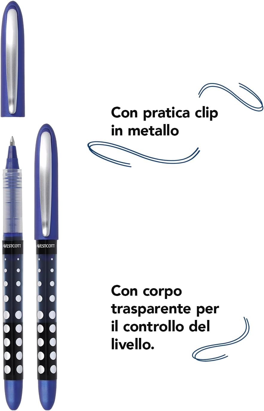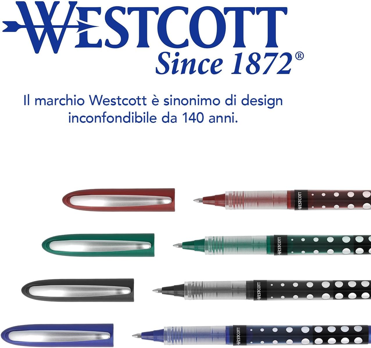 Scrittura precisa - Con uno spessore del tratto di 0,5 mm per linee chiare e nitide. Ideale per scrivere, correggere o disegnare a scuola, all'università, in ufficio o a casa. Corpo trasparente: consente un facile controllo del livello di inchiostro per una scrittura senza interruzioni. Innovativa tecnologia capillare: garantisce un flusso di inchiostro uniforme per risultati ottimali senza macchie e sbavature. Design ergonomico: l'impugnatura trasparente garantisce una presa comoda e antiscivolo e consente di scrivere senza fatica per lunghi periodi di tempo. Qualità dal 1872: da 140 anni il marchio Westcott è sinonimo di prodotti per la casa e l'ufficio dal design inconfondibile e dall'ineguagliabile rapporto qualità-prezzo.