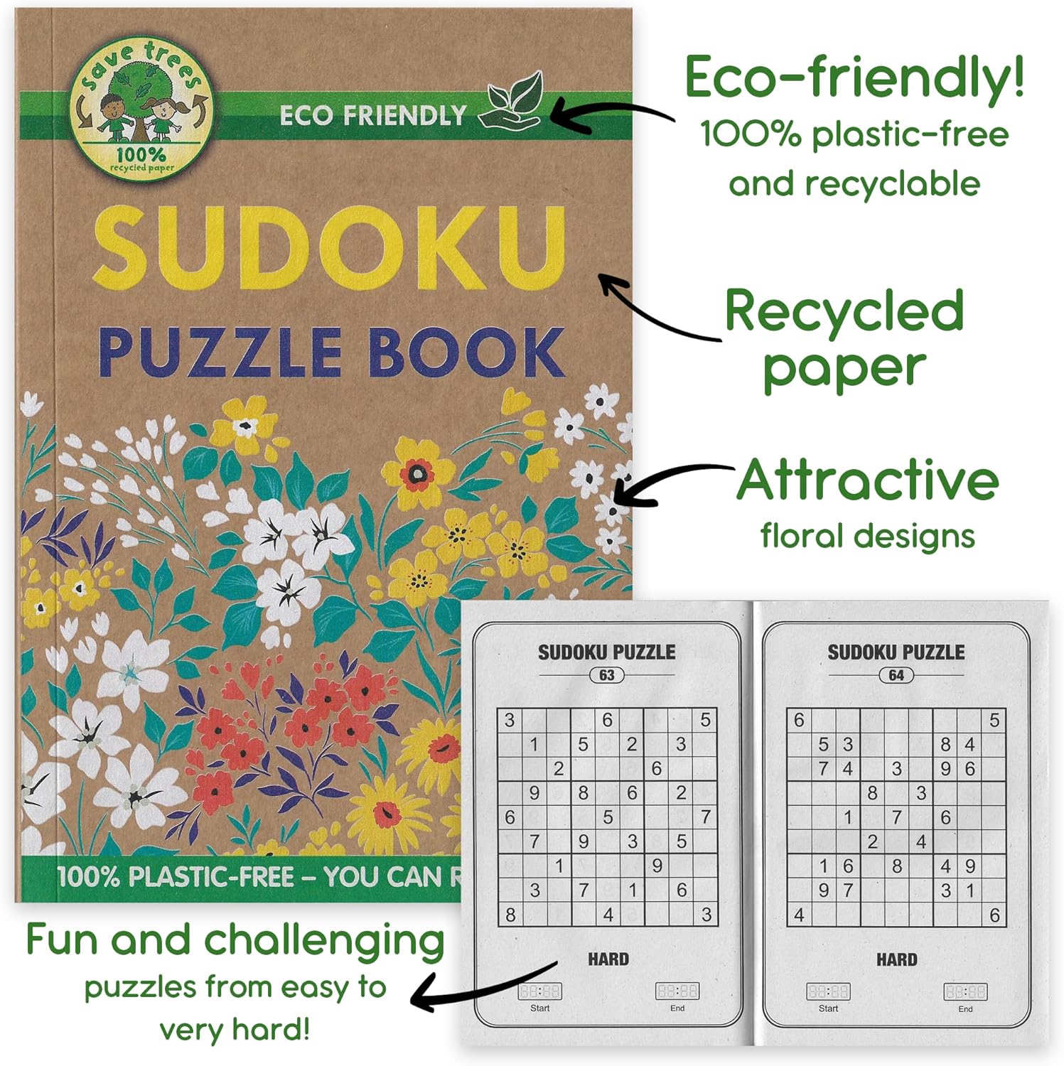 Ecologico: questi libri di puzzle sudoku ecologici per adulti offrono una svolta sostenibile sui tradizionali libri di puzzle, fornendo ore di intrattenimento con materiali privi di plastica SFIDA E INTRATTENIMENTO | Immergiti in un mondo di rompicapo con questi libri di puzzle sudoku per adulti, progettati per sfidare e coinvolgere la tua mente con una varietà di puzzle matematici Ideale per i viaggi: perfetti per i viaggi, questi divertenti libri di puzzle di matematica assicurano che i puzzle di tutte le età possano divertirsi a risolvere indizi sui libri sudoku ovunque tu sia! Migliora le tue abilità cognitive: con questi libri di puzzle di matematica per adulti, ogni libro di puzzle presenta una collezione di rompicapo che sono sia impegnativi che divertenti Bellissimi design: questi libri sudoku per adulti presentano bellissimi disegni floreali sulla copertina anteriore. Nota: i disegni sono inviati a caso e possono variare da quelli mostrati.