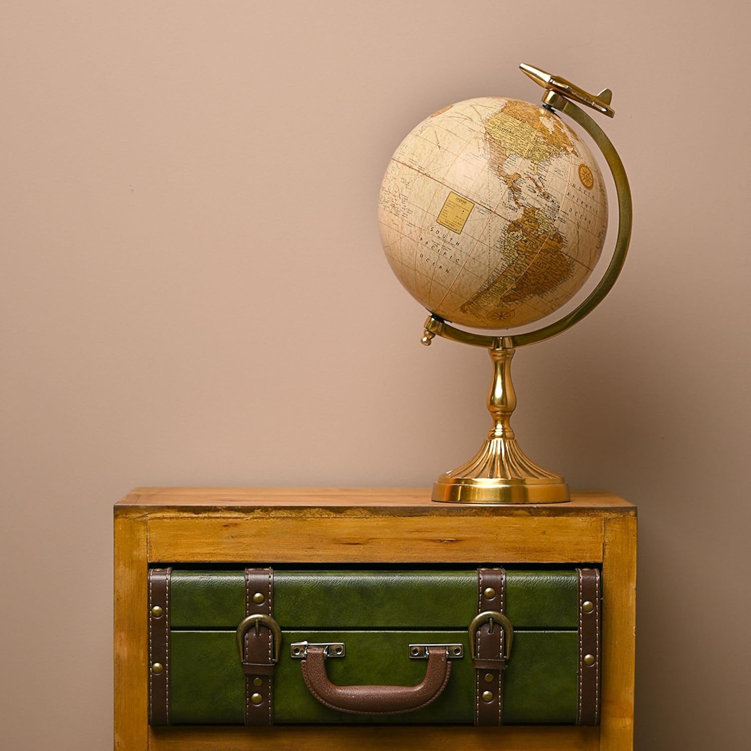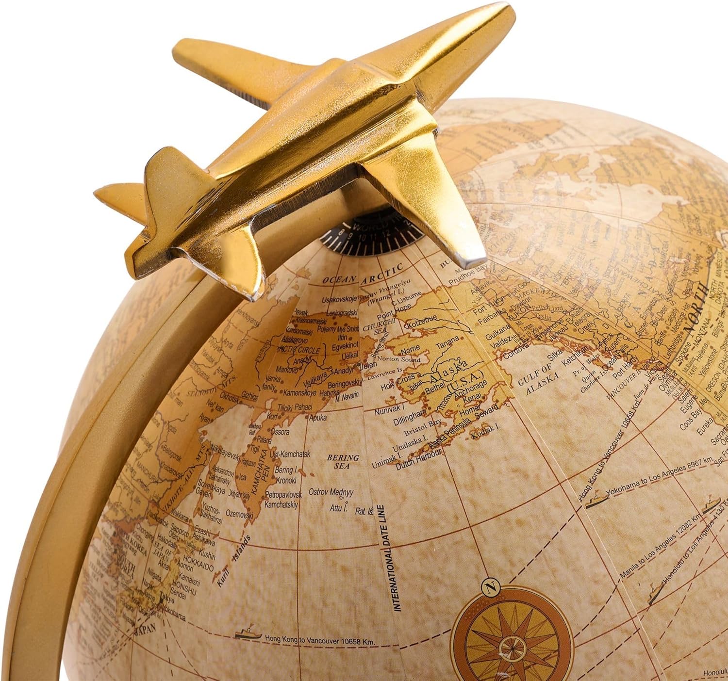 Elegante finitura dorata: questo mappamondo presenta un lussuoso supporto a base d'oro e una finitura metallica, aggiungendo un tocco di raffinatezza e opulenza a qualsiasi ufficio o studio. Design elegante e lucente: la struttura in metallo lucido e i dettagli precisi offrono un'estetica moderna ma classica, rendendolo un pezzo straordinario per gli appassionati di arredamento e i gentiluomini esigenti. Dimensioni ideali: misura 37 cm x 19 cm x 19 cm, questo globo è della dimensione perfetta per servire come elemento di arredamento elegante e funzionale, si adatta perfettamente a spazi grandi e compatti. Educativo e ispiratore: usa questo globo per ampliare gli orizzonti e ispirare curiosità. È uno strumento funzionale per l'istruzione, che suscita interesse per la geografia e le culture globali. Regalo classico perfetto: una scelta eccellente per un regalo premuroso, sia per un'occasione importante, un risultato speciale o semplicemente per migliorare l'arredamento di uno studio o di un ufficio.