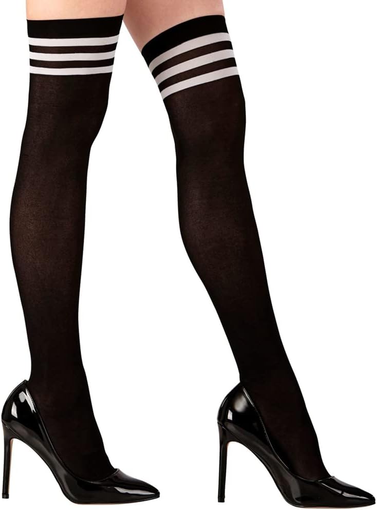 CALZE SOPRA AL GINOCCHIO CON RIGHE BIANCHE 70 DEN COLORE ACCESSORIO: Coppia di ABITI FANTASIA NERI NUOVISSIMI