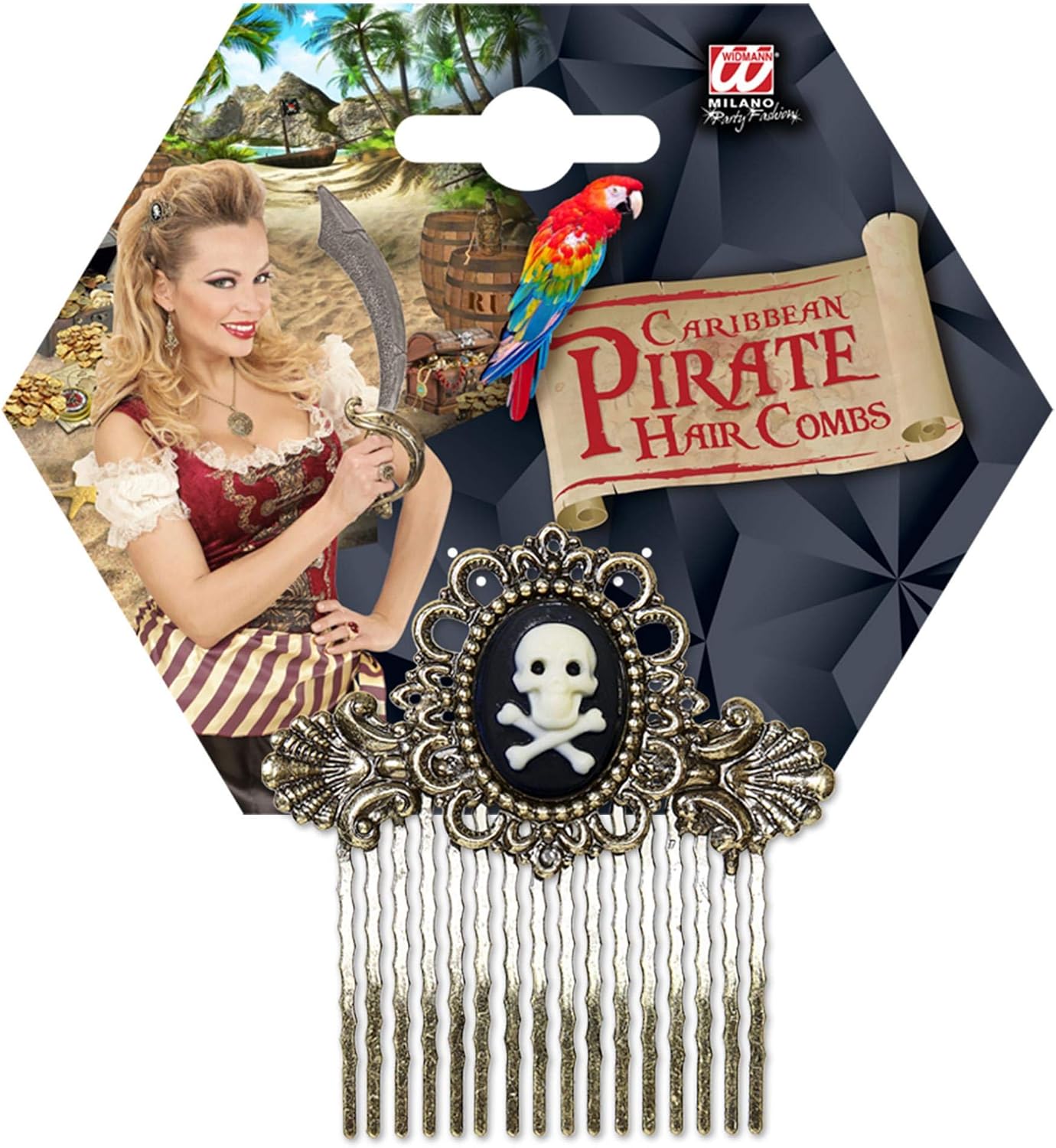 Coppia di pettini teschio con tibie incrociate in oro invecchiato, ideali per travestimenti di Halloween, carnevale, tutte le maschere e feste a tema per divertirsi in compagnia.