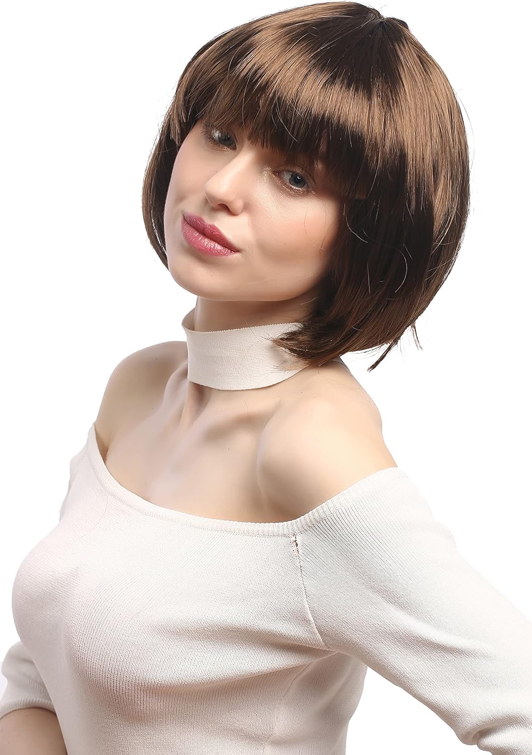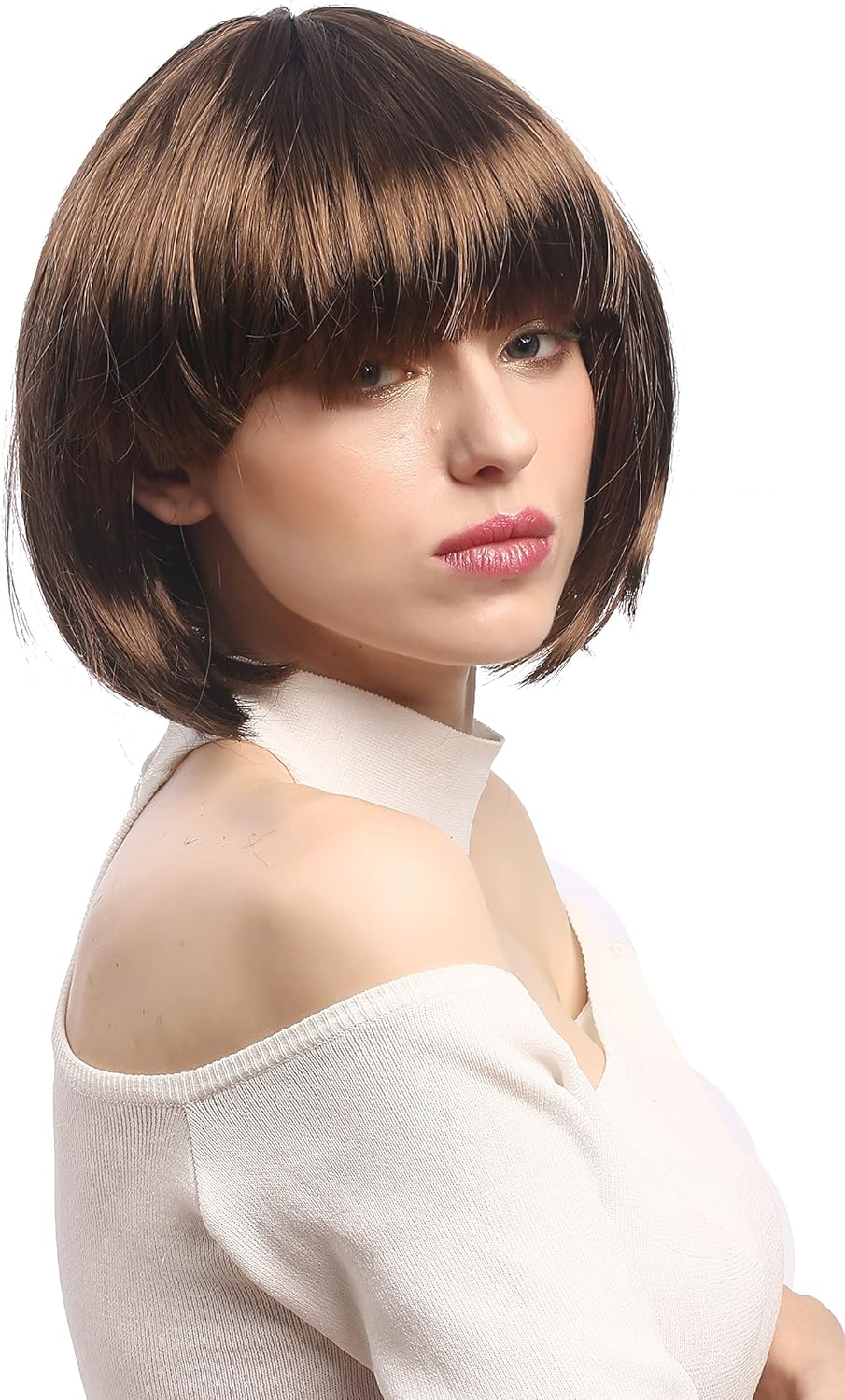 Parrucca da Carnevale, marrone, corta con pettinatura a caschetto. Nuova con etichetta marca: WIG ME UP