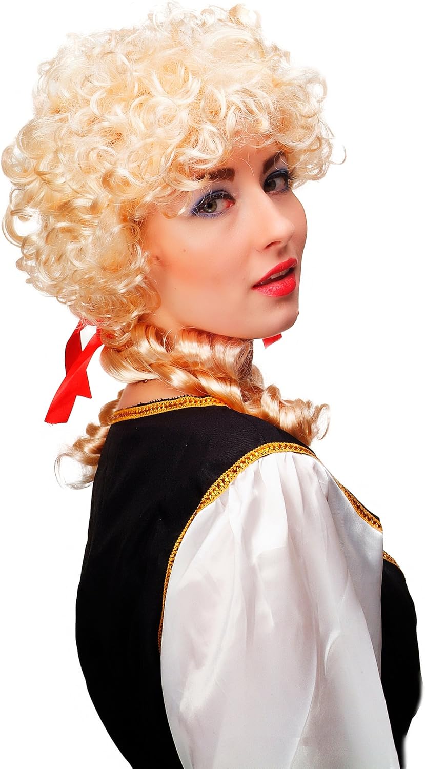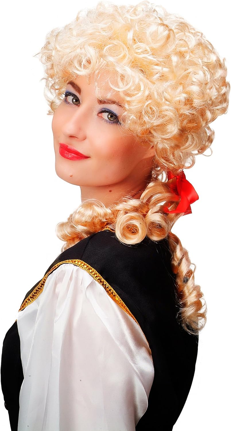 Parrucca riccia biondo chiaro con due code in stile Barocco(Maria Antonietta) per carnevale, Cosplay e Halloween. Nuova e con imballo originale. Marca: WIG ME UP