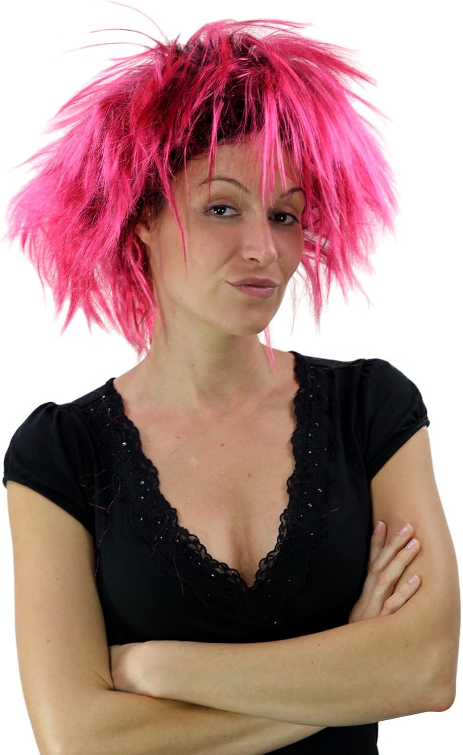 Parrucca da Carnevale, da far perdere la testa in uno stupendo raffinato Nero-Rosa- Punk, Glam, Anni 80. Codice colore: P103PC41. Spedizione discreta con imballo neutro, Nuova con etichetta