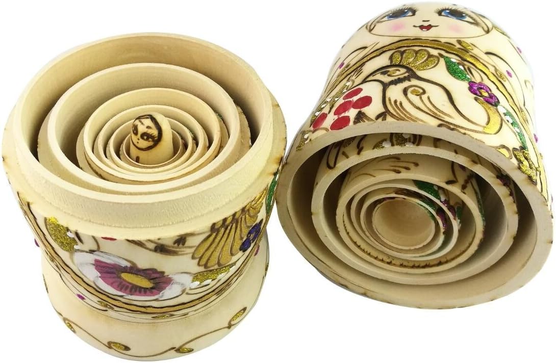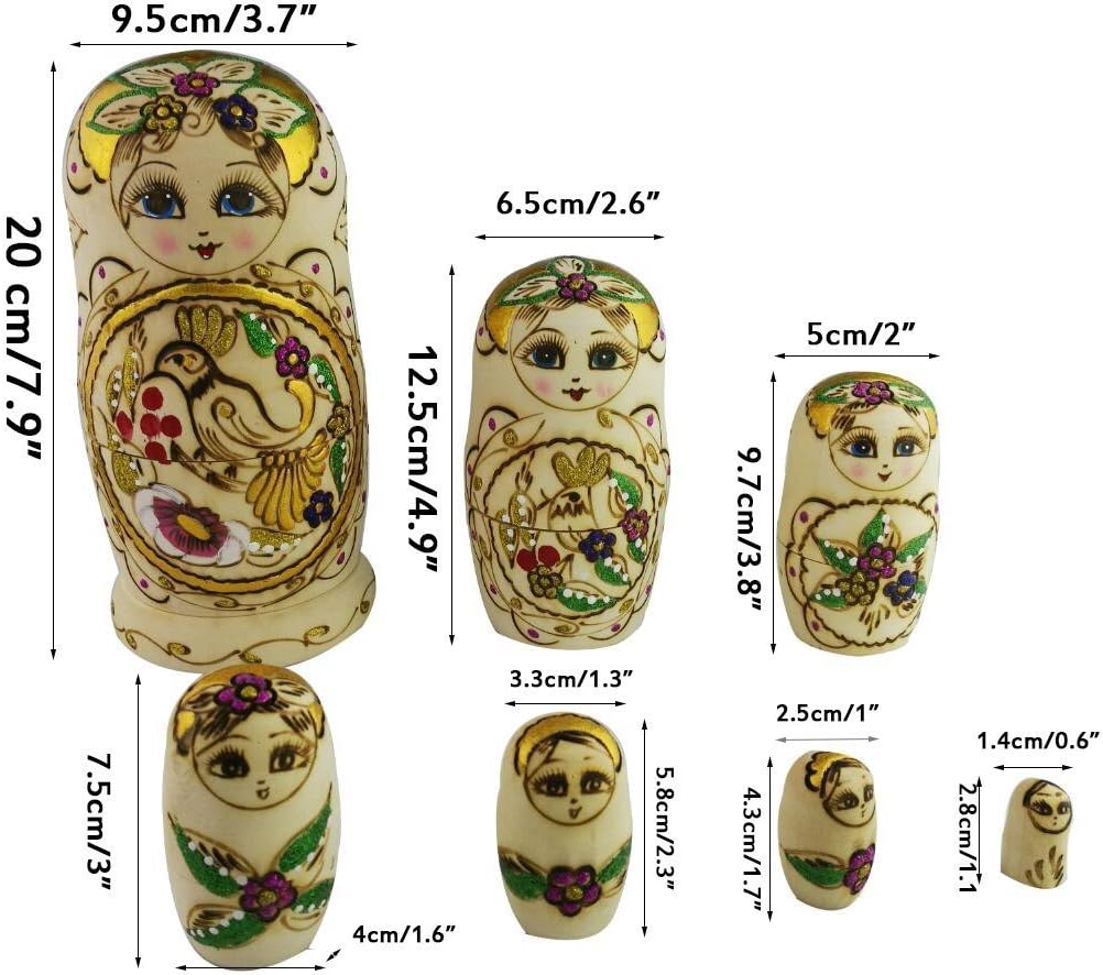 Il giocattolo impilabile in legno è realizzato a mano e dipinto con vernici atossiche. Incredibile giocattolo per bambini con il quale puoi generare così grande divertimento spegnendo ogni fuori e rimetterli, precisamente La più grande bambola di nidificazione è 20x9,5 CM. Come souvenir della Russia per decorare la tua casa! I bambini adoreranno questo giocattolo in legno, un regalo ideale per loro durante l'infanzia!