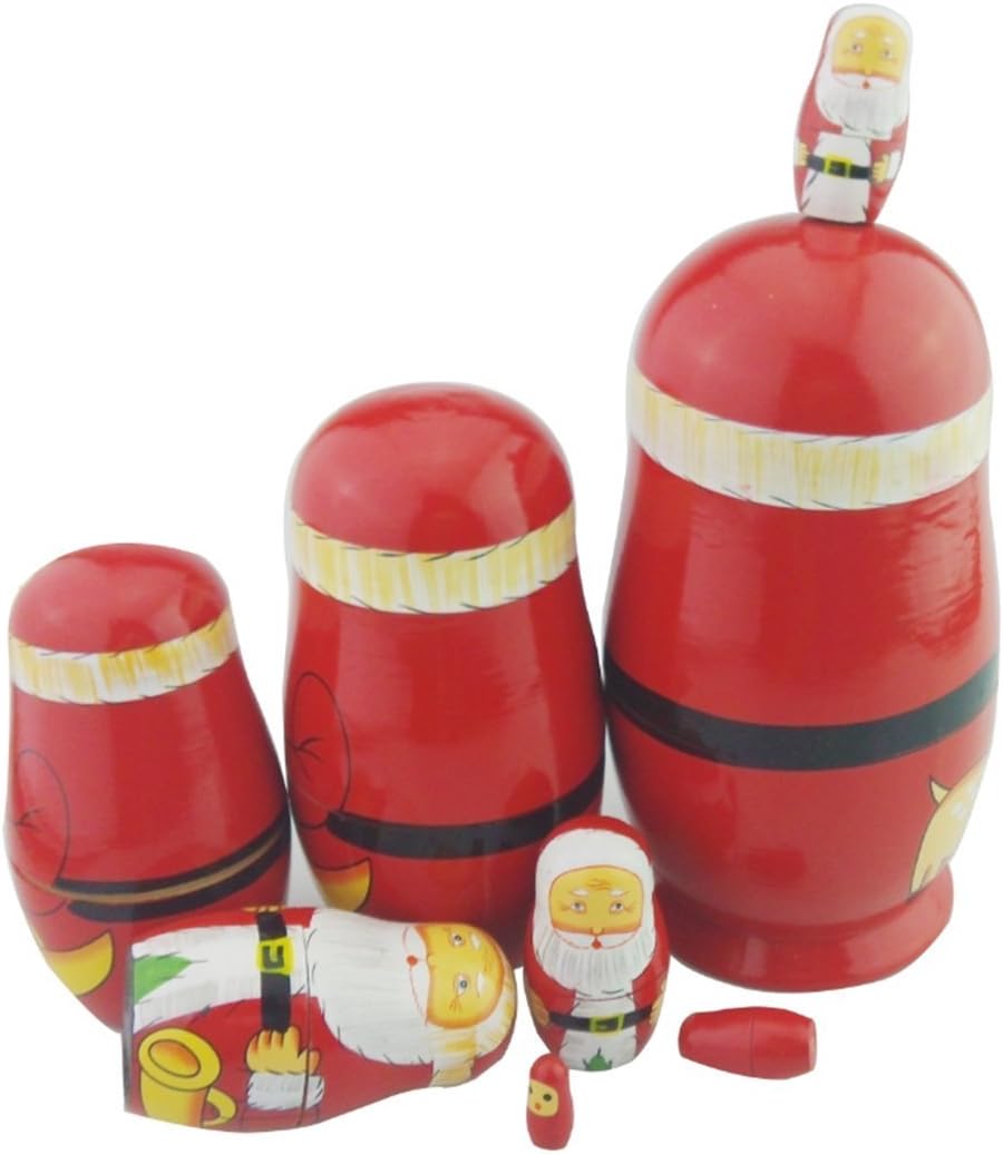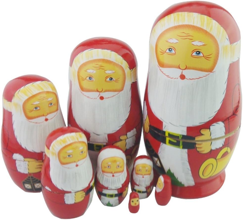 Set di 8 matrioska natalizie, modello Babbo Natale. Realizzato in legno, finitura lucida. Perfetto come regalo di Natale per i bambini. Dimensioni: 18 x 9,6 cm.