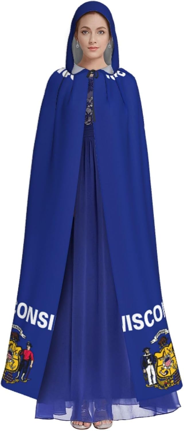 Wisconsin, mantello con cappuccio, unisex, per Halloween, Natale, vampiro, stregone, costume cosplay