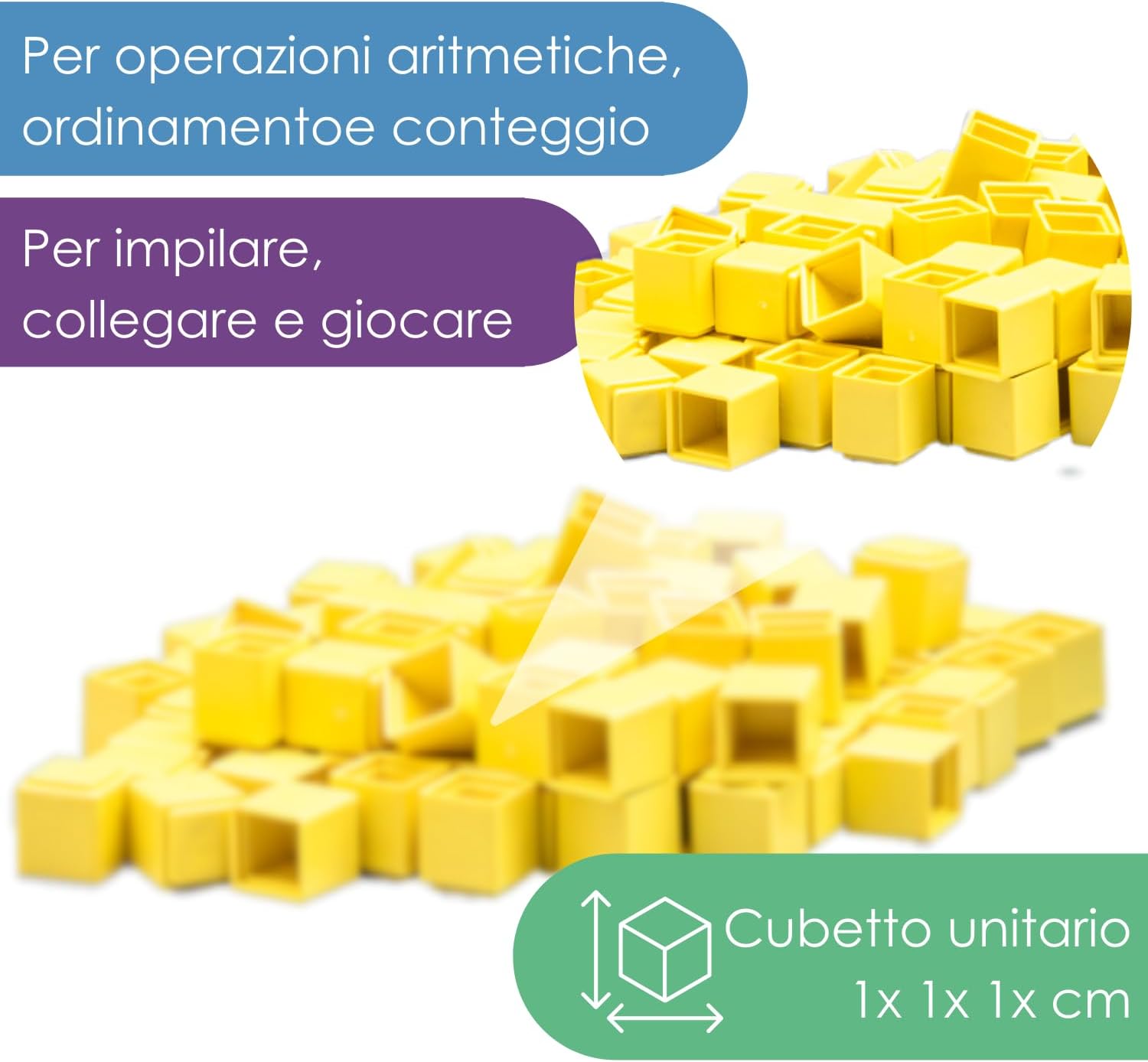 Contenuto: 100 cubetti, 10 bacchette, 10 piastre per cani, 1 dado da 1 cm Adatto per: cubi di calcolo per la scuola elementare, materiale di servizio, la scelta migliore anche in caso di problemi di calcolo. Imparazione: calcolare nel campo dei 1000 numeri è chiaramente rappresentato, un aiuto indispensabile per le lezioni di matematica (lingua italiana non garantita). Certificazione: questo prodotto è privo di PVC (cloruro di polivinile), plastificanti (ftalati) e metalli pesanti. Per questo sono stati utilizzati esclusivamente materiali testati TÜV e conformi alla norma sui giocattoli (DIN EN 71-3). Prodotto in Germania.