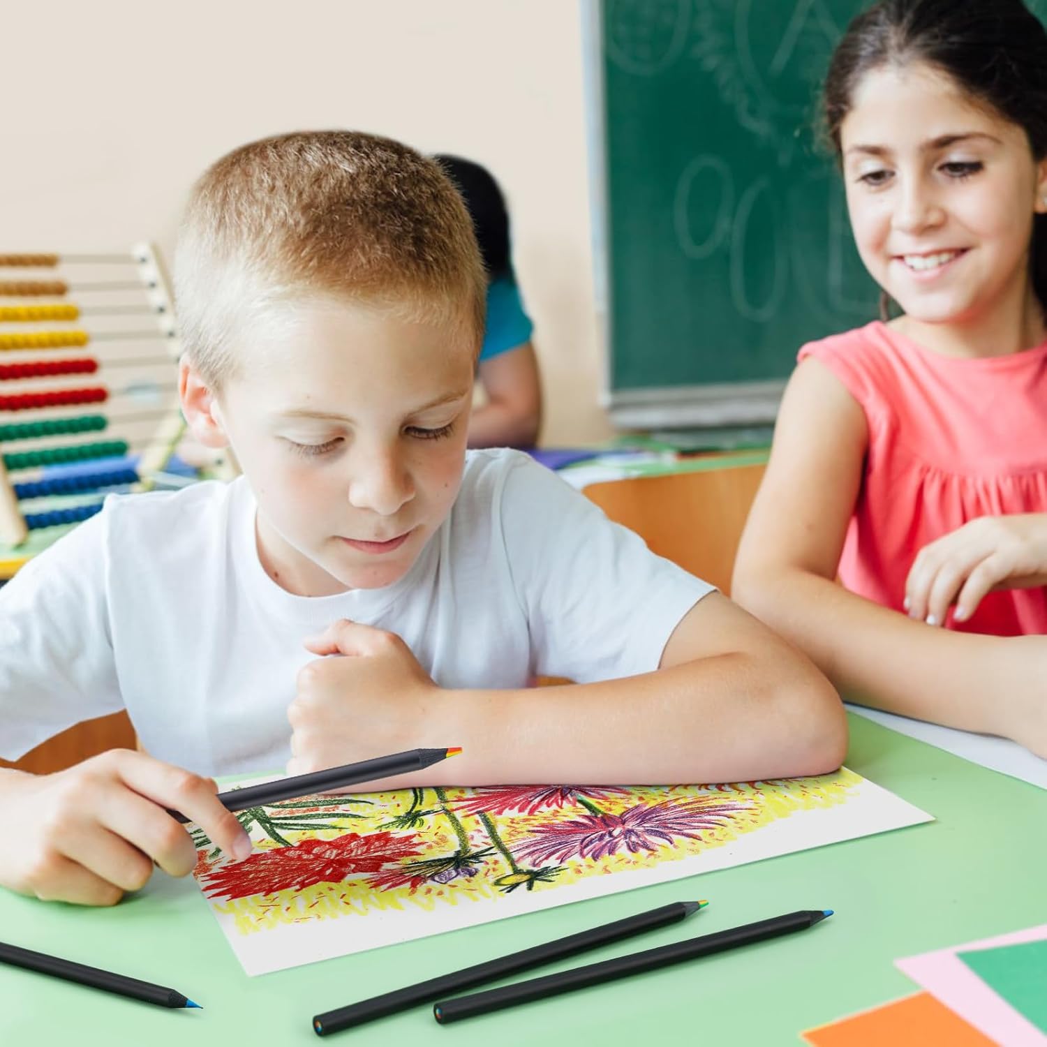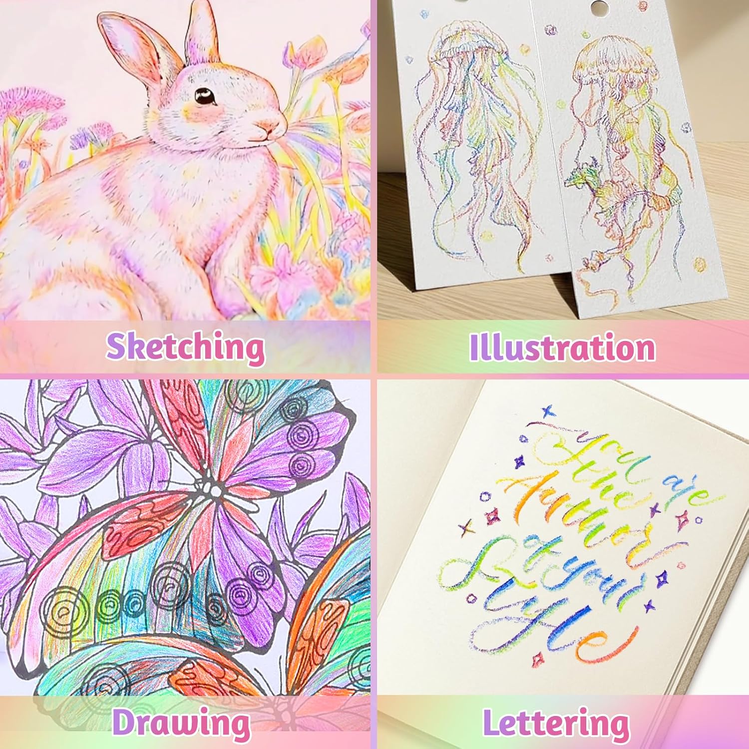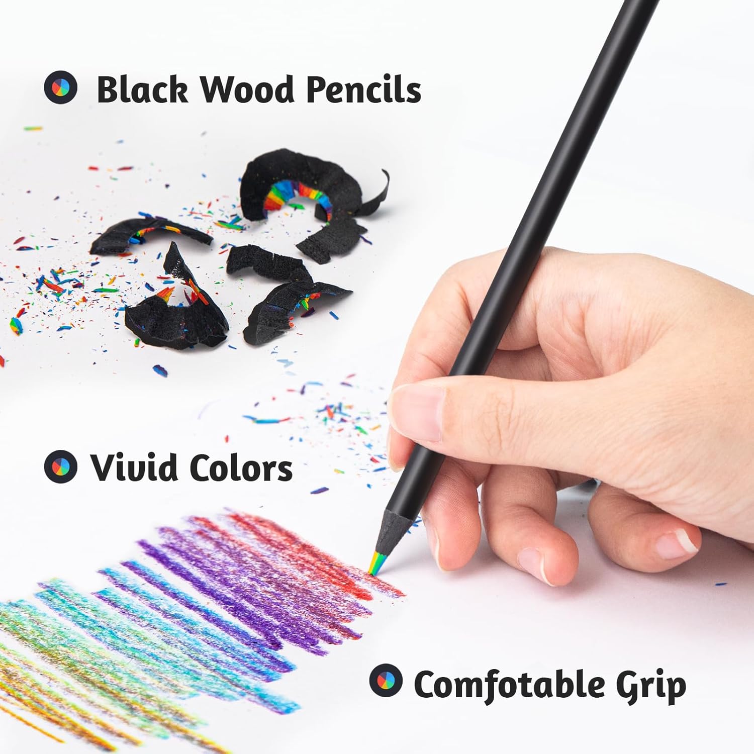 【Colore Arcobaleno 7 in 1】 Ogni set contiene 24 penne arcobaleno, ogni penna arcobaleno è composta da una miscela di sette colori. Ruota o inclina la punta della penna per creare sfumature o effetti di fusione diversi in modo casuale. 【Alta Qualità】 Le mine della penna arcobaleno sono realizzate con pigmenti di alta qualità, che sono dai colori vivaci, facili da colorare, hanno tratti morbidi e non sono facili da sbiadire e rompersi, rendendoli durevoli. 【Design Ergonomico】 Il fusto della penna arcobaleno presenta un design rotondo morbido e antiscivolo, ergonomico, comodo da tenere e facile da controllare, adatto per scrivere e disegnare a lungo termine. 【Facile da Affilare】 Il portamatite arcobaleno è realizzato in legno nero ad alta densità, che non è facile da rompere durante l'affilatura e può facilmente controllare la nitidezza della matita. La penna arcobaleno pre-affilata ti offre un'esperienza di disegno più confortevole. 【Applicazioni per Scene Multiple】 La penna arcobaleno è adatta per pittura creativa, schizzi a colori, colorazione, graffiti, marcatura, ecc. Scelta regalo ideale per Pasqua, Festa dei bambini, Natale, compleanni dei bambini e altre festività.