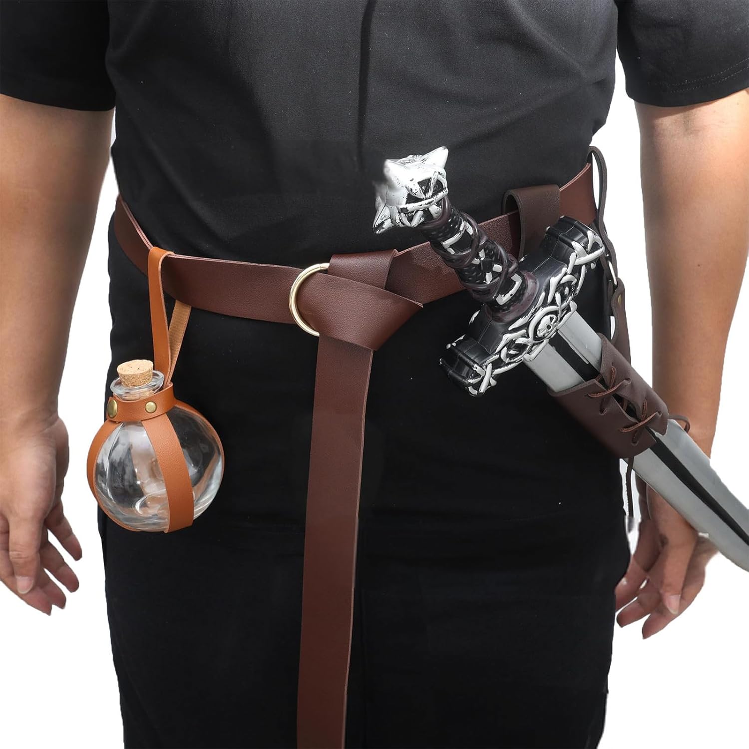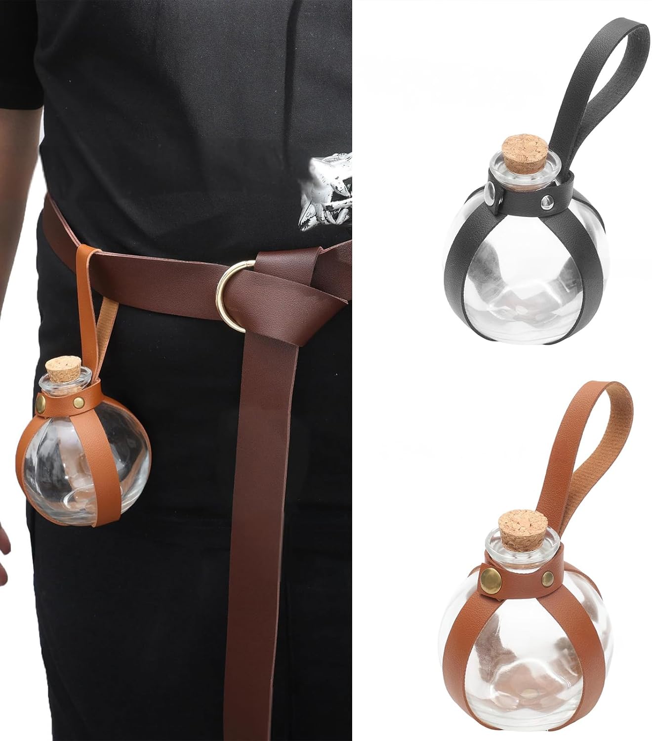 Questa bottiglia è un ottimo accessorio medievale per un costume da strega Adatto per chi è affascinato dal collezionista medievale di curiosità uniche Le bottiglie magiche sono adatte per feste a tema Halloween, giochi di ruolo, cosplay, feste a tema e così via Quando si utilizza l'imbracatura in pelle medievale per appendere la bottiglia di vetro alla vita, e non è facile cadere Ottimo come elemento decorativo per la casa, accessorio per caffè, o come accessorio per feste e feste di Halloween