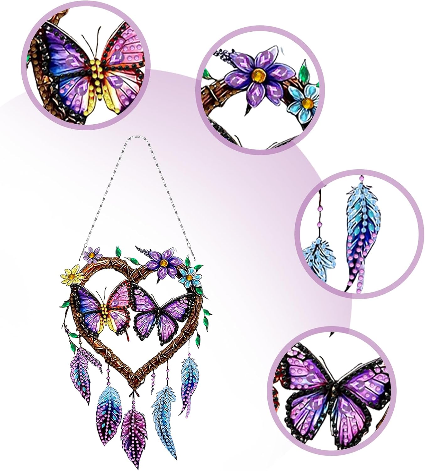 Scatena la tua creatività: immergiti nel mondo dei kit artistici di diamanti appesi e crea bellissime opere per la decorazione domestica o come regali ponderati. Metodo di crafting senza sforzo: utilizzare i modelli di pendenti per finestre d'arte di rinestina per posizionare senza sforzo le gemme di resina su punti designati. Crafting terapeutico per tutti: sperimentare gli effetti calmanti di questa attività, per gli adulti. Splendido risultato 'arte cristallina: al completamento, avrai un pezzo di arte di cristallo mozzafiato pronto ad adornare la tua casa o il presente come regalo caro ai propri cari. Creazioni a tema di Natale: abbraccia lo spirito natalizio con queste decorazioni fai-da-te, portando calore e gioia alla tua famiglia durante il Natale.