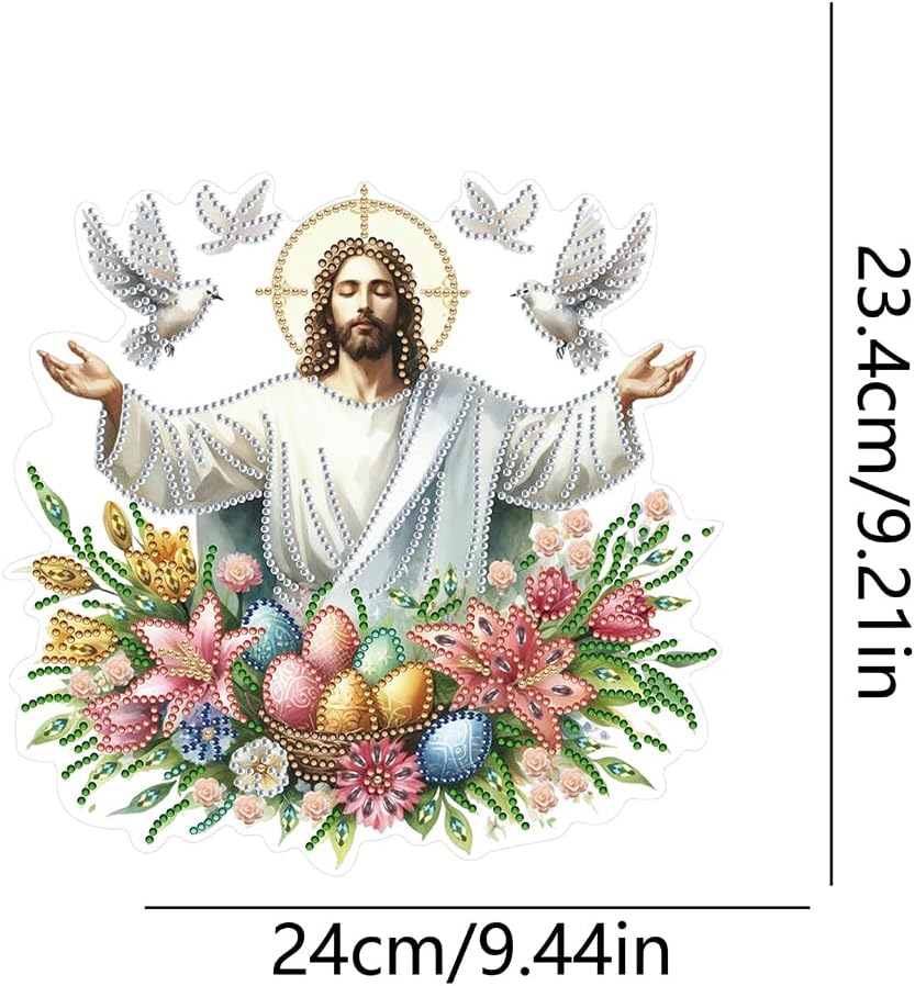 Pittura diamante acrilico Ciondolo appeso Gesù Uovo di Pasqua Cristallo su un lato Appeso Decorazione della parete di casa 5D Pittura diamante fai da te Ciondolo punti for la decorazione della finestra del giardino