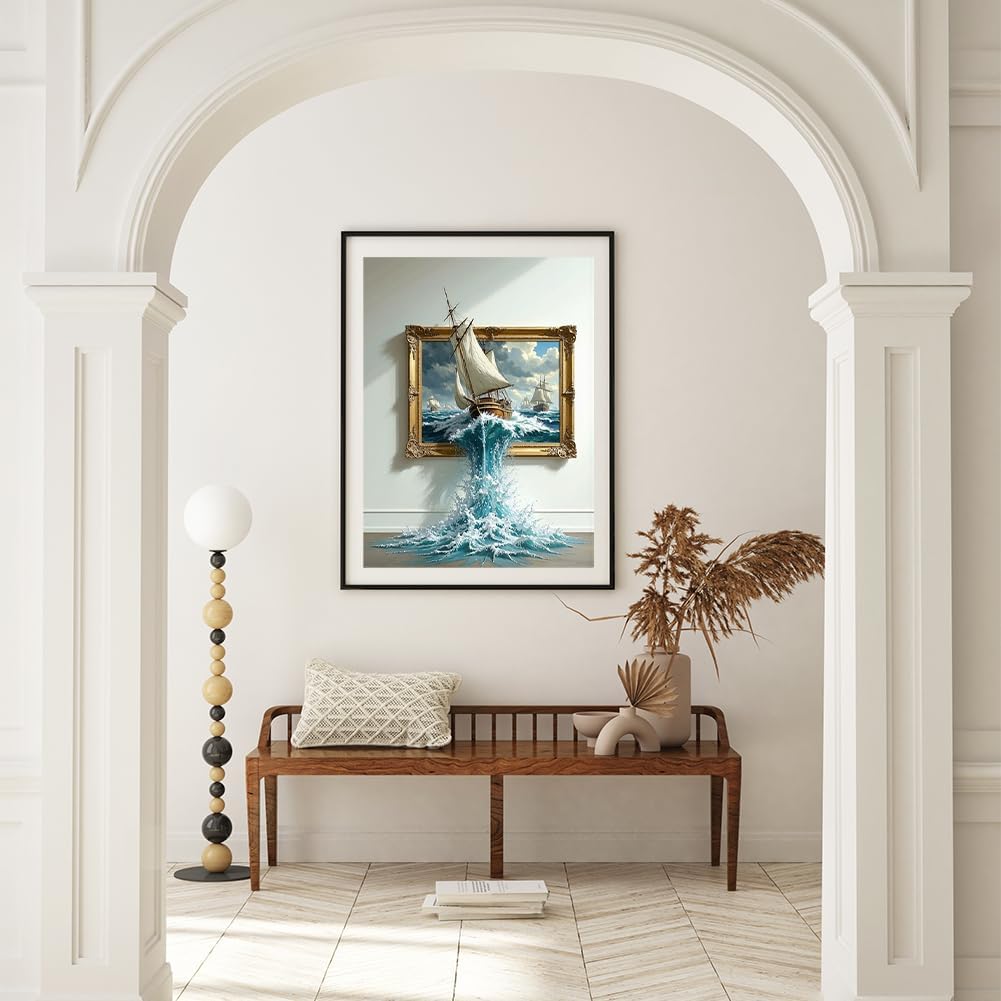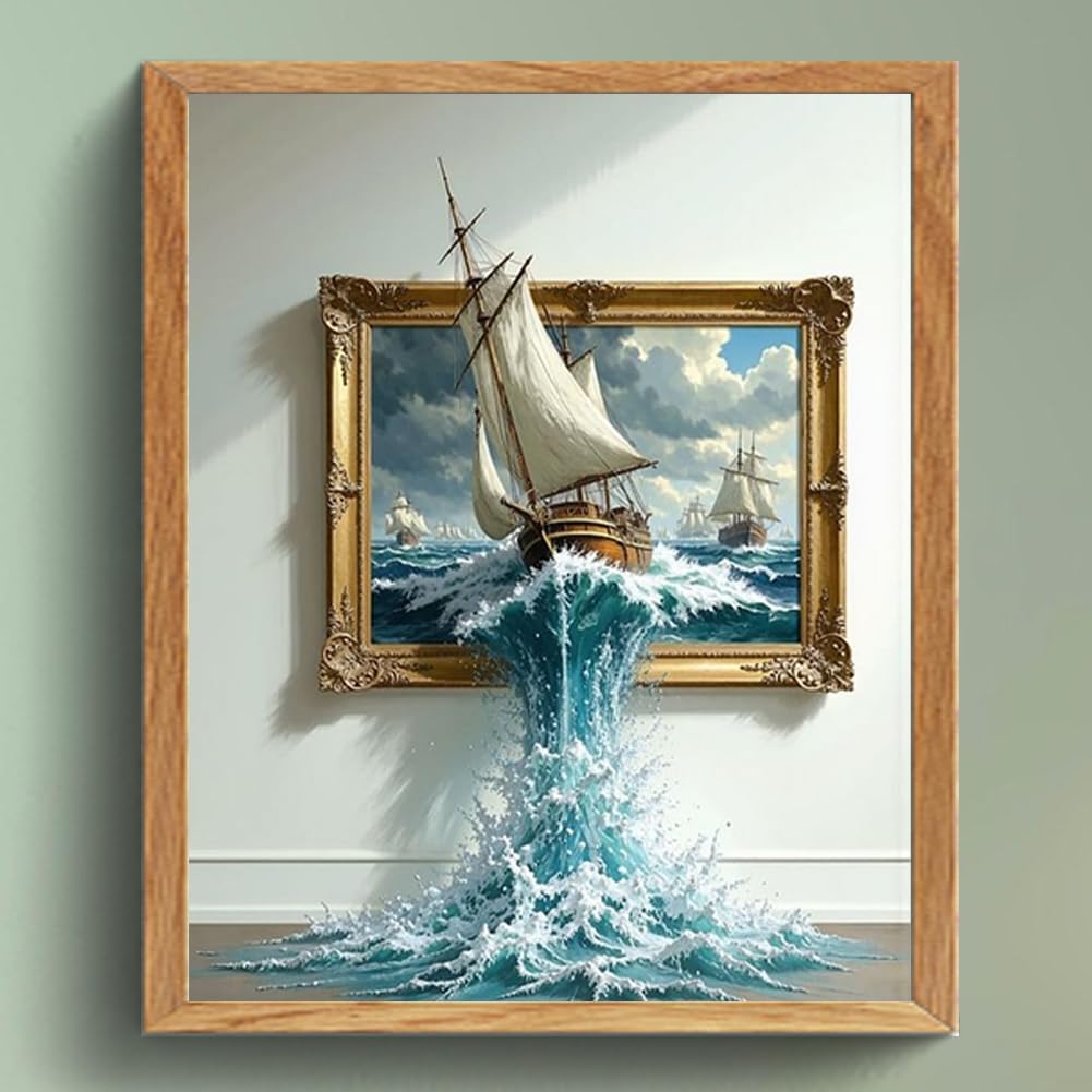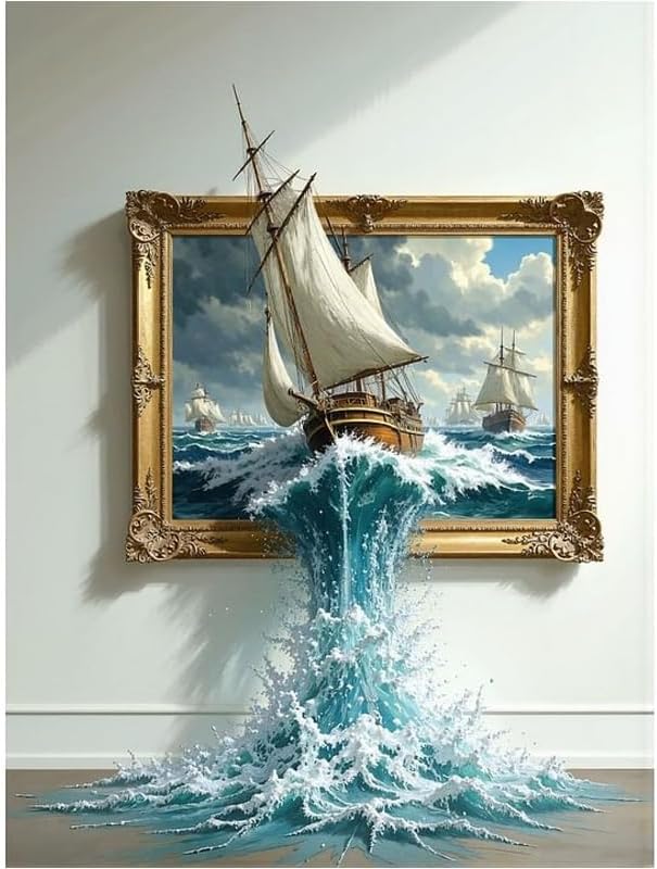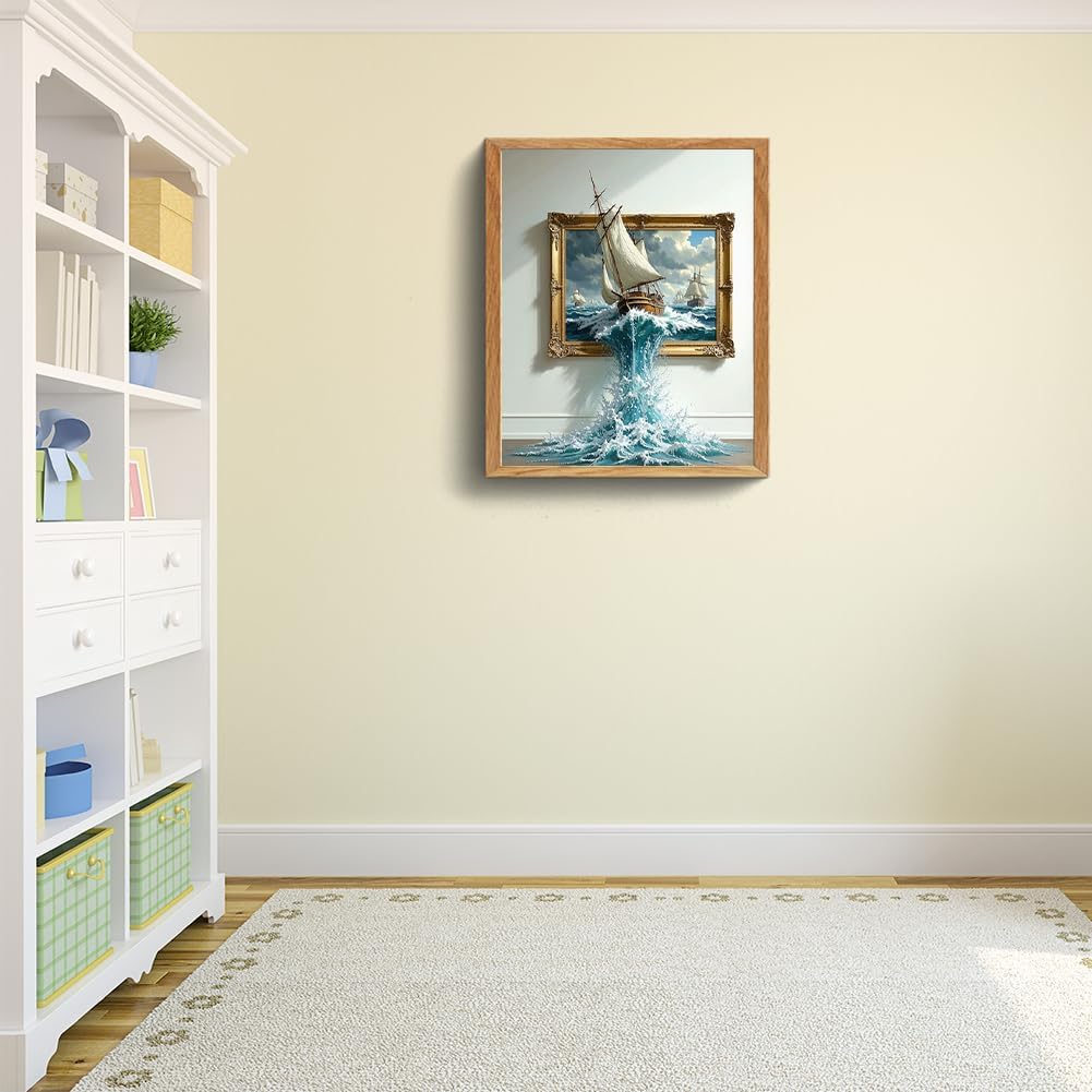 Barca a vela da 50x40 cm 5d drill completa fai -da -te round decorazioni da parete