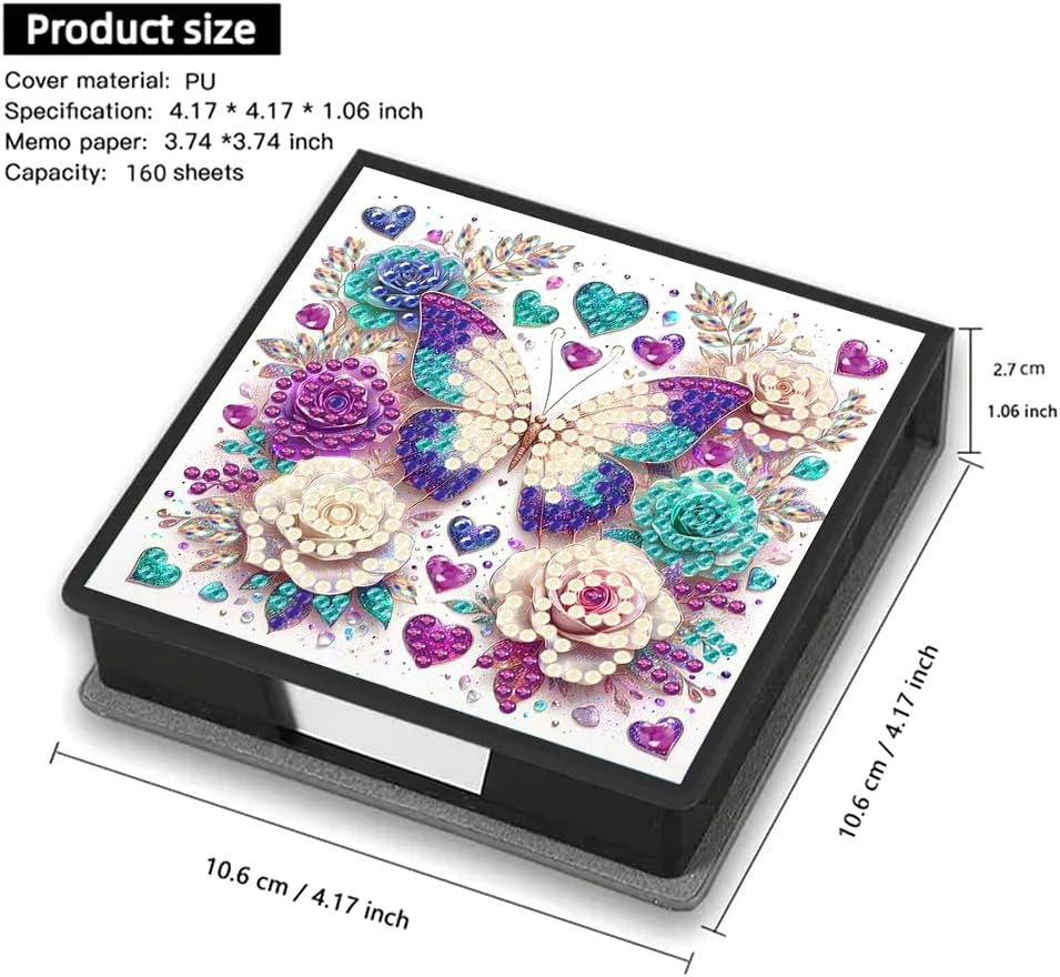Regalo perfetto: kit a mosaico per appendiabiti con pittura a gemme, ideale per amici, familiari e colleghi in compleanni o festività. Decorazione elegante: una volta completato, il box Notecard con pittura di diamanti è un raffinato complemento per casa o ufficio, aggiungendo fascino e arte. Organizzazione versatile: supporto per note adesive che può anche contenere penne o clip, mantenendo l’area di lavoro ordinata con un tocco artistico. Esperienza creativa: consente di personalizzare il design, favorendo la creatività e le capacità motorie per un prodotto unico. Contenuto abbondante: include 160 fogli vuoti per promemoria, messaggi o liste, utile e decorativo per ogni scrivania.