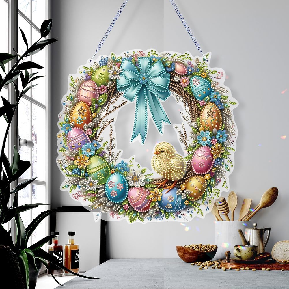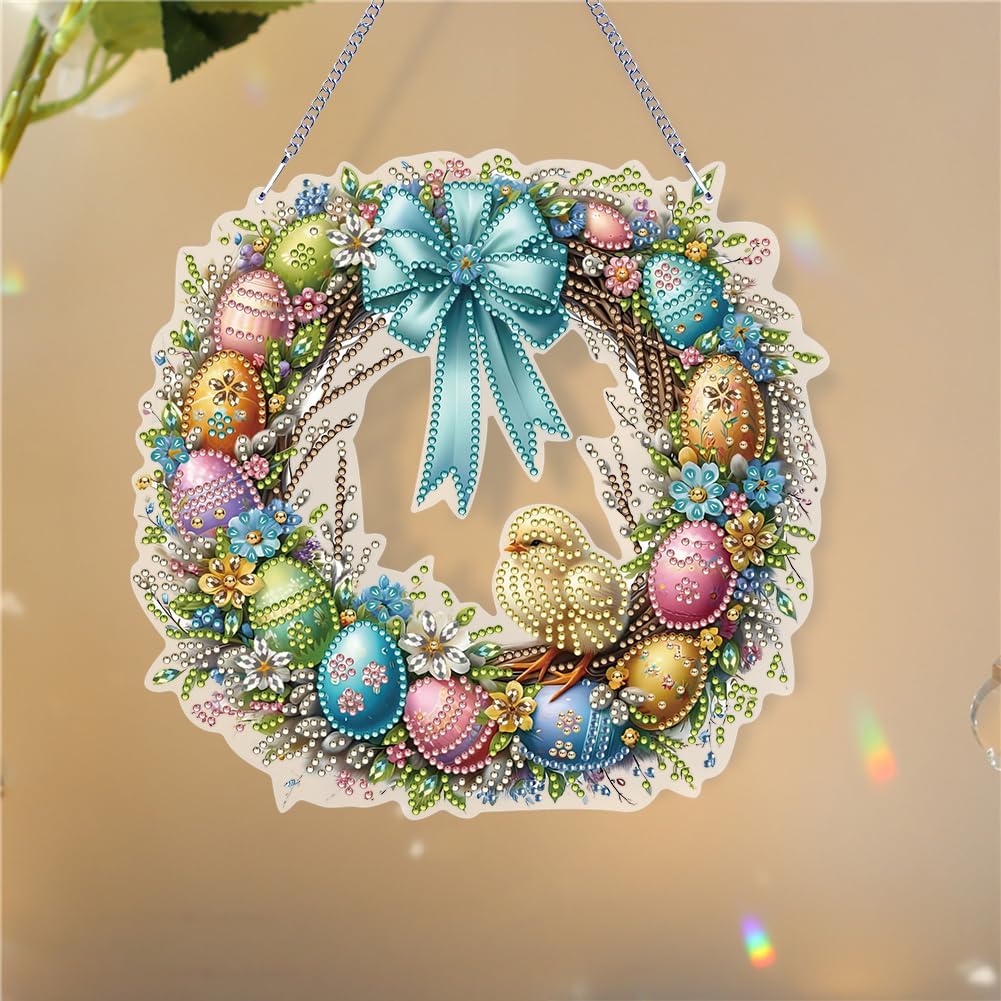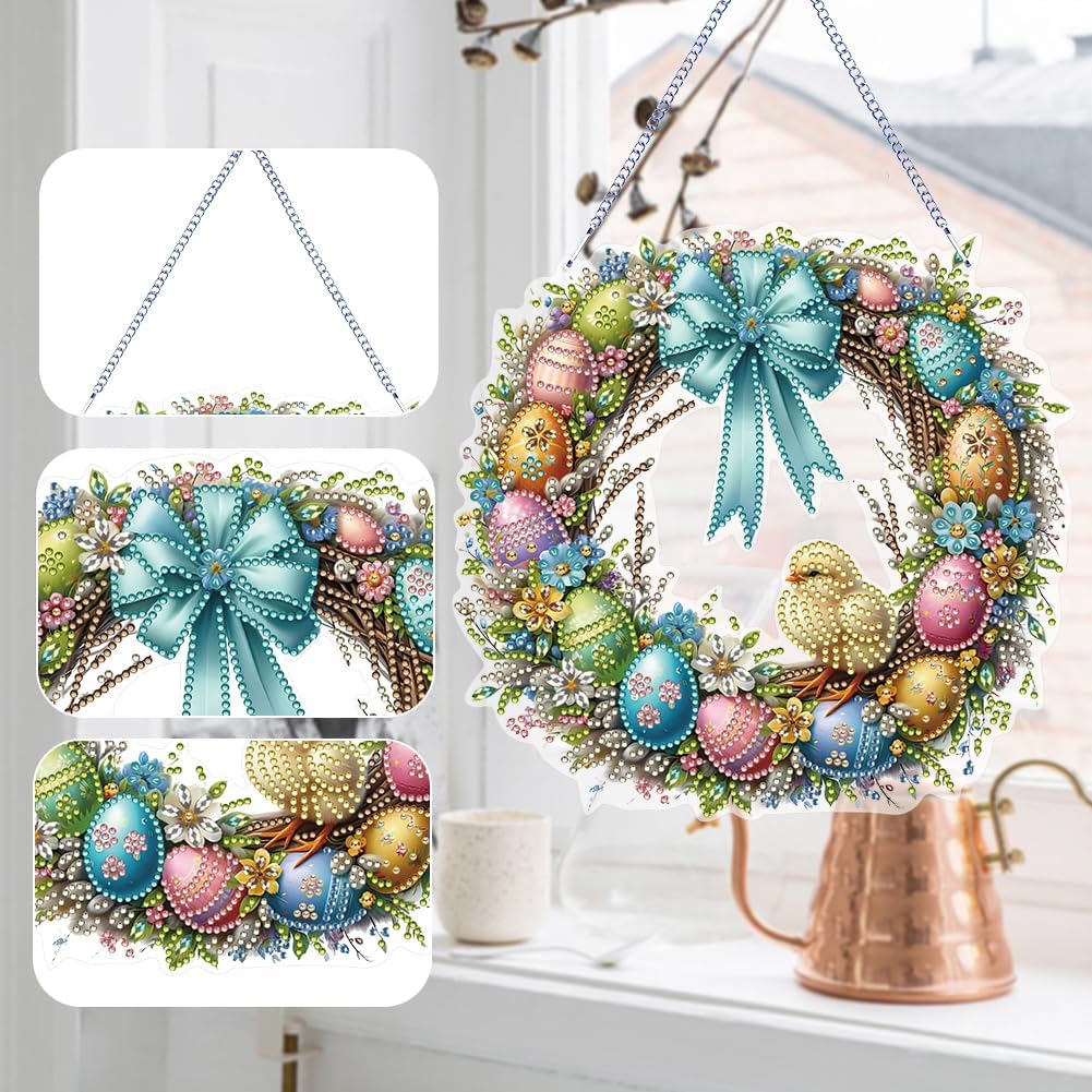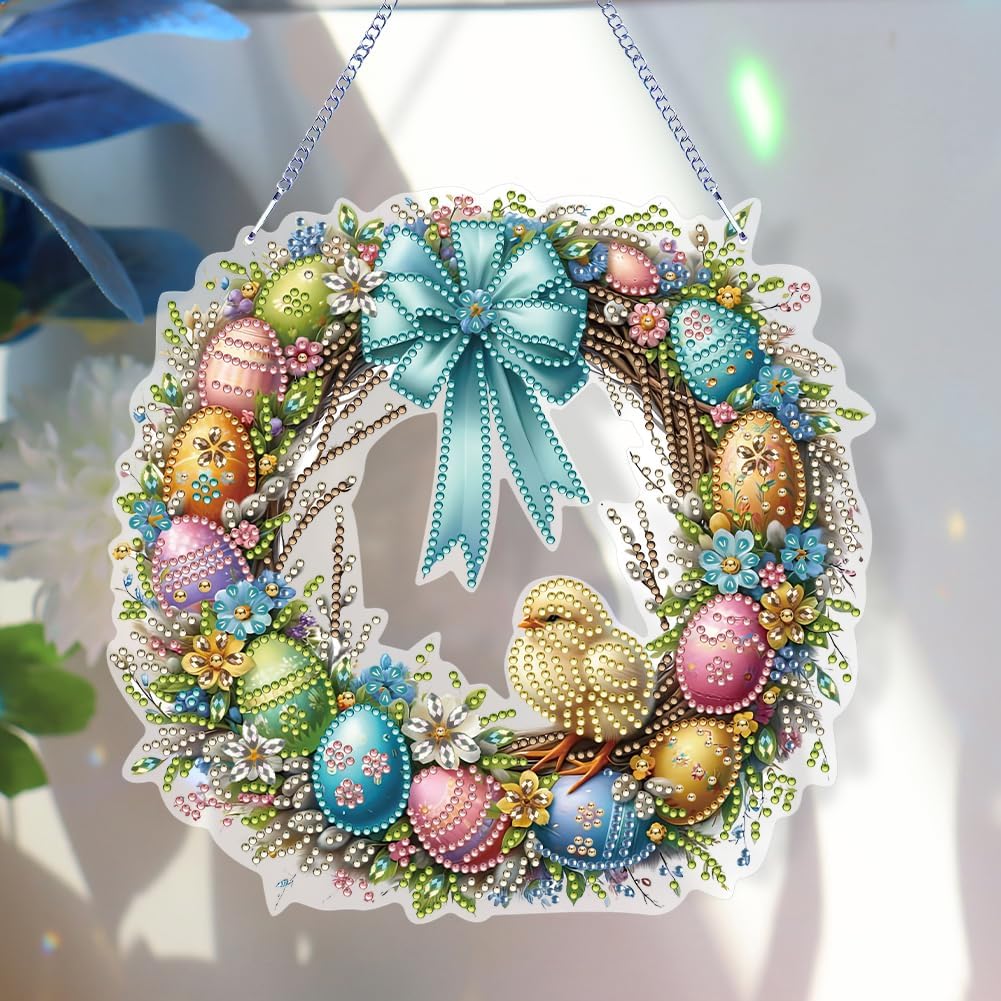 Creatività senza limiti: il nostro ciondolo con punti di pittura con diamanti 5D fai-da-te ti consente di creare squisite opere d'arte for decorare la tua casa o regalare a mano. Lascia che la tua creatività voli ed esprimi il tuo stile unico attraverso q Ciondolo appeso con pittura a diamante su un lato, fatto a mano, ghirlanda di Pasqua, 5D fai da te, pittura con diamanti, puntini, ciondolo con strass, diamanti, arte, finestra, pendenti for la decorazione della finestra del giardino