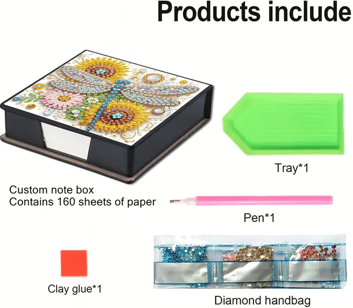 Esperienza fai -da -te unica: personalizza la tua scatola Notecard di pittura a diamante con tecniche di arte diamantata, godendo del processo di crafting, migliorando le capacità di artigianato e la creatività. Effetto di decorazione elegante: una volta completato, il supporto per la nota appiccicosa 'arte gemma funge sia da oggetto funzionale che da un bellissimo pezzo di arredamento per la casa, aggiungendo un tocco artistico al tuo ufficio, studio o soggiorno. Design multifunzionale: oltre a immagazzinare pad di memo, questo supporto per memo per la pittura gemma può contenere piccoli oggetti come penne e clip, aiutando a mantenere una scrivania ordinata e organizzata. Durevole ed elegante: realizzato con materiali di qualità, questa scatola di cristalli autoadesiva garantisce longevità ed eleganza, rendendolo un'aggiunta pratica ed elegante a qualsiasi spazio. Scelta regalo: la scatola di arte Diamond è un regalo ideale per amici, familiari o colleghi, adatto a occasioni come compleanni, festival ougurali, che trasmettono desideri sinceri.