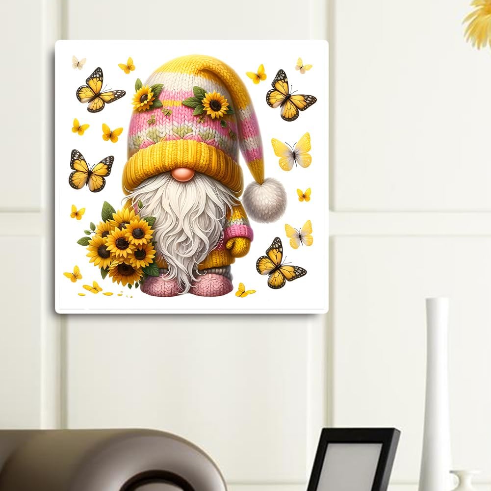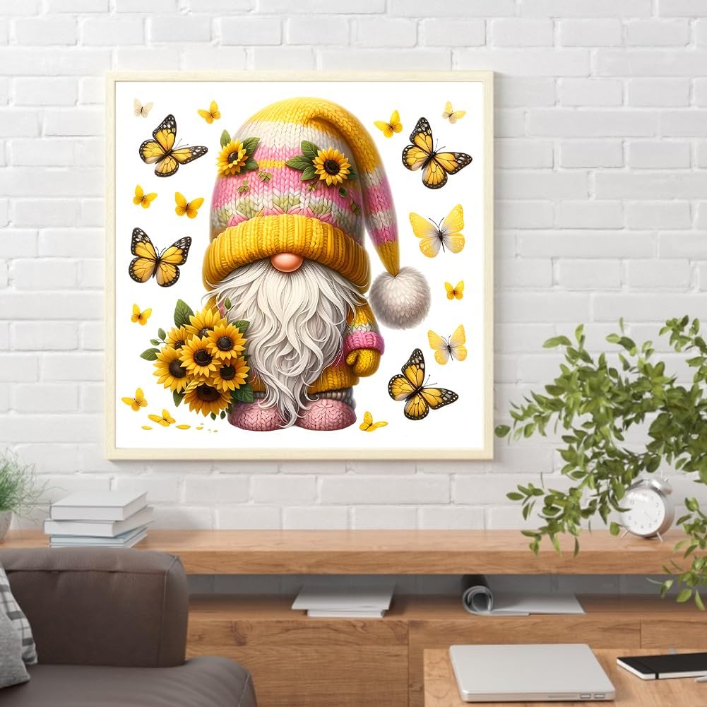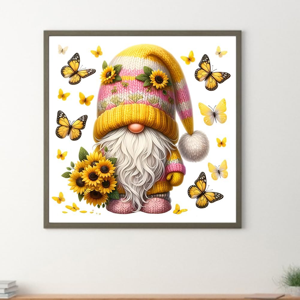 WMFASBAG Kit 5D fai da te trapano rotondo completo diamante pittura girasole gnomo Decor Art 30x30 cm