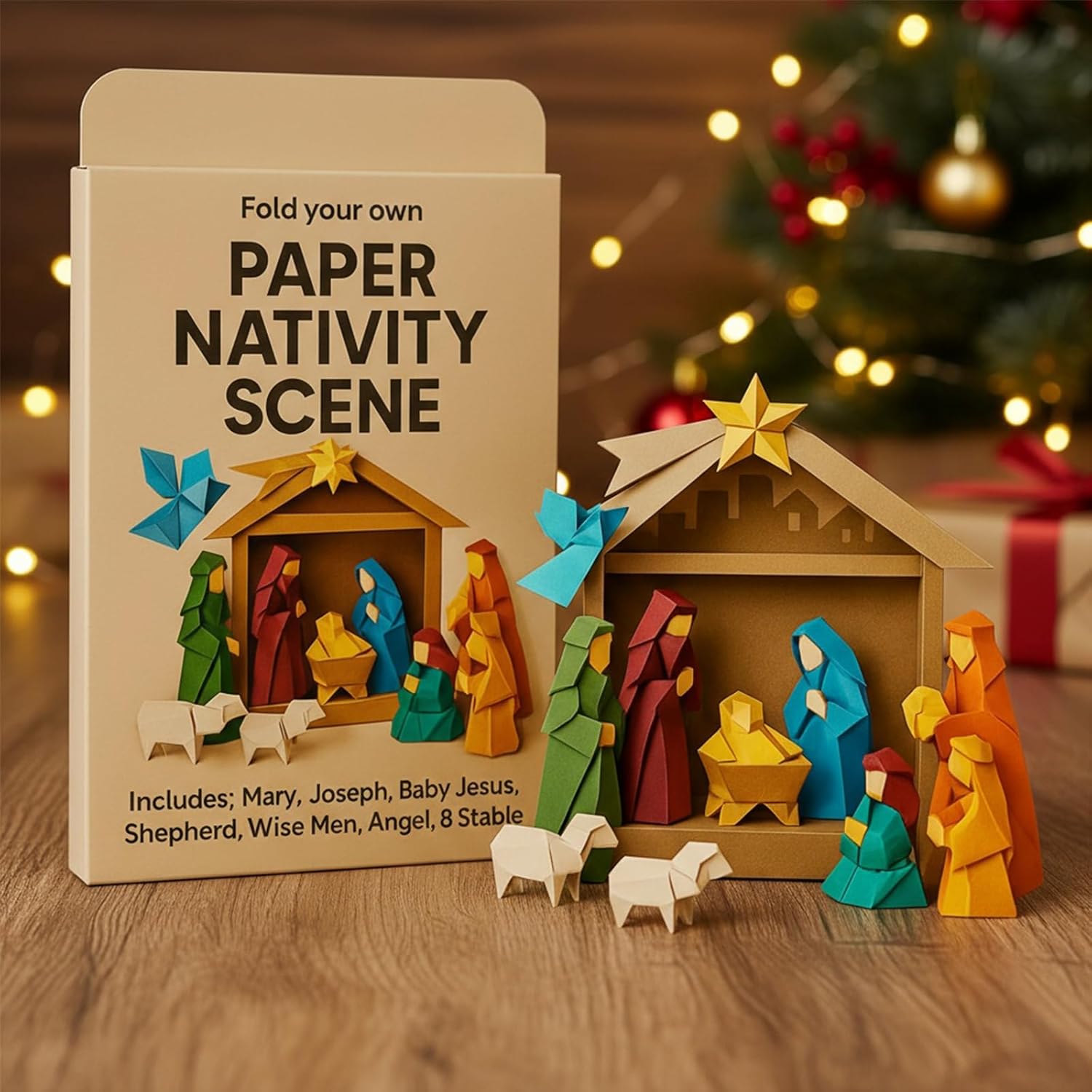 Crea un Natale memorabile: costruisci il tuo presepe con questo kit artigianale per presepe di carta fai-da-te, consentendo alle famiglie di assemblare un presepe festivo per le attività natalizie e le decorazioni stagionali. Un modo significativo per festeggiare insieme. Piegature adatte ai principianti: le chiare istruzioni illustrate nel set di origami natalizi aiutano a guidare i principianti e i bambini passo dopo passo, in modo che chiunque possa assemblare con sicurezza un impressionante presepe in questa stagione. Partecipa a momenti festivi sentiti: questo kit origami per presepe natalizio incoraggia un'interazione familiare significativa mentre rivivi la storia del Natale attraverso l'artigianato pratico e la narrazione, creando ricordi che durano. Accento natalizio di lunga durata: mostra con orgoglio il tuo kit finito di carta origami 3D su una mensola del camino, una libreria o un tavolo da pranzo, offrendo un bello e riutilizzabile per ogni celebrazione natalizia. Ideale per gruppi e individui: adatto per adulti, bambini o per l'artigianato di una festa di famiglia, il kit fai da te per il presepe di Natale garantisce che tutti possano partecipare alla magia del Natale con un delizioso progetto pratico.