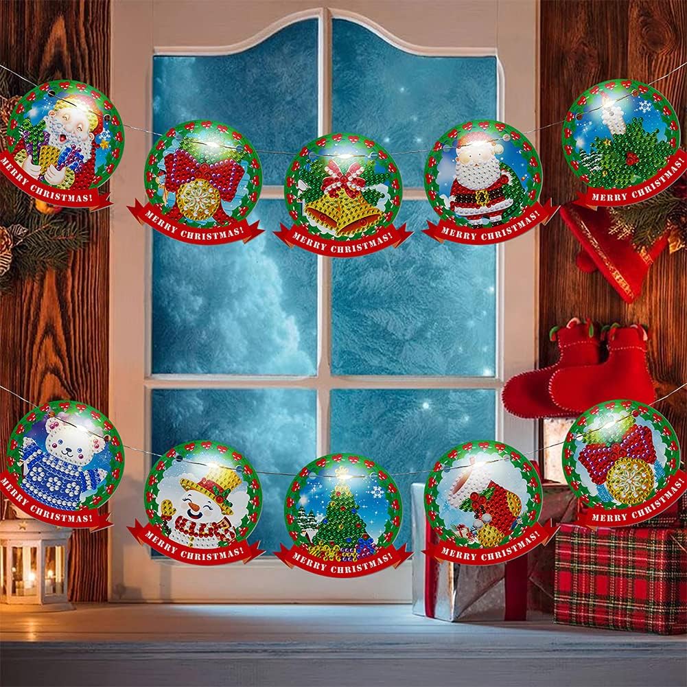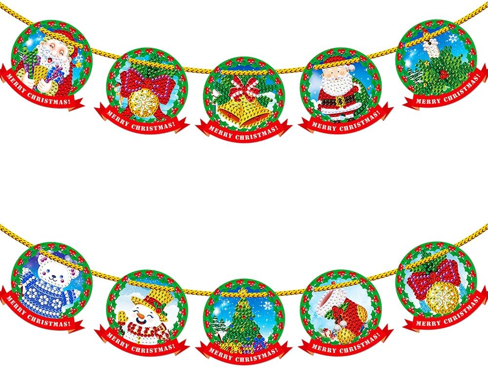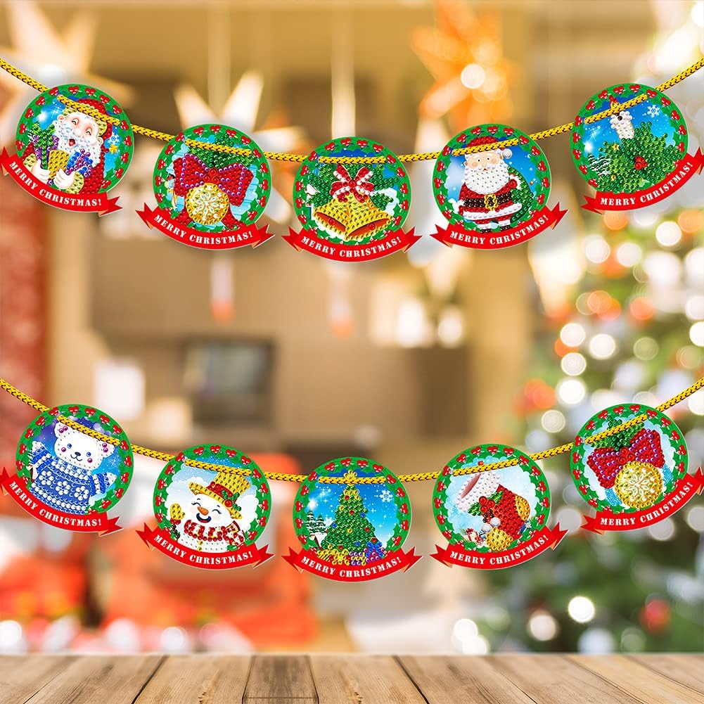 Catena di trambusto del bacino di cartone di cartone di Natale diamantato (12 pezzi) GIODO DI CAMPORE DI CAMPORE DI NASSILE DEY KIT MOSAIC RINSTONE ORNAMENTI Christmas Cardboard Kit Kit Mosaic Rhinestone Charm Chain Rinestone Charm Chain Art Art Orning Craft per decorazioni per la stanza della casa di Natale