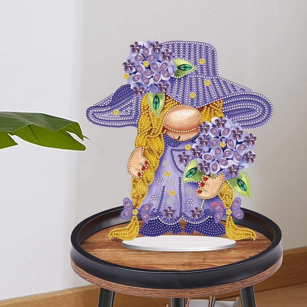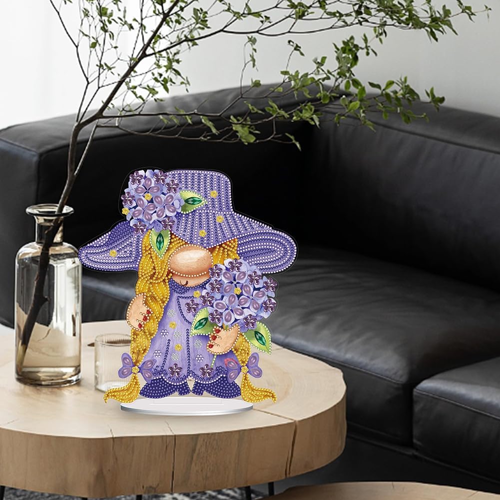 WMFASBAG Round+Special Shape Decorazioni desktop Decorazioni acriliche 5d Arte Decorazione da tavolo da giardino Gnome Top Ornament for Office Desktop Decor (GJ372)
