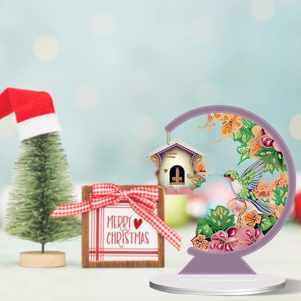 Forma speciale Desktop Ornamento Uccello con fiore in bocca Tavolo Decor Pittura di cristallo Kit da tavolo Uccello decorato Desktop Art for Home Office Desktop Decor