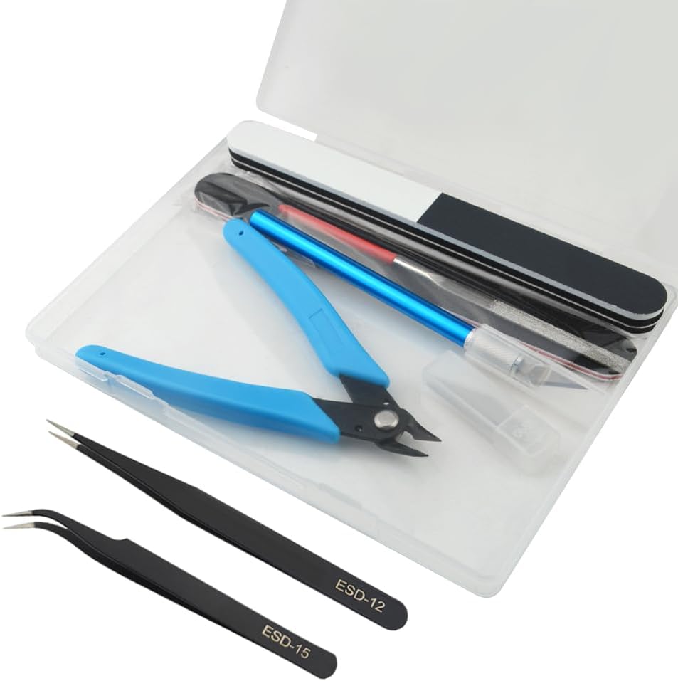 Ampia applicazione: il set di strumenti di base per modellatori è adatto per principianti e modellatori professionisti, selvaggiamente applicato all'area di produzione di giocattoli, come auto, robot, cartoni animati, edifici, aeroplani e altri mestieri. Affidabile da usare: le pinze laterali sono realizzate in acciaio inossidabile di alta qualità, costruzione solida, abbastanza affilate, fornendo un lungo periodo di durata; le pinzette sono realizzate in acciaio inossidabile di alta qualità, costruzione solida, abbastanza affilate. Grande aiutante: soddisfa tutti i requisiti di base dei principianti, adatto sia per principianti che per esperti, grande aiuto per i tuoi lavori di costruzione di Gundam. Leggero e portatile: confezionato in una robusta scatola trasparente, comodo da trasportare e installare. Puoi portarlo ovunque, usarlo in qualsiasi momento. Kit di vari strumenti: la confezione include 1 x pinze laterali, 2 x pinzette, 1 x lime, 2 x barra lucida su entrambi i lati, 1 x taglierino; 1 x scatola trasparente.