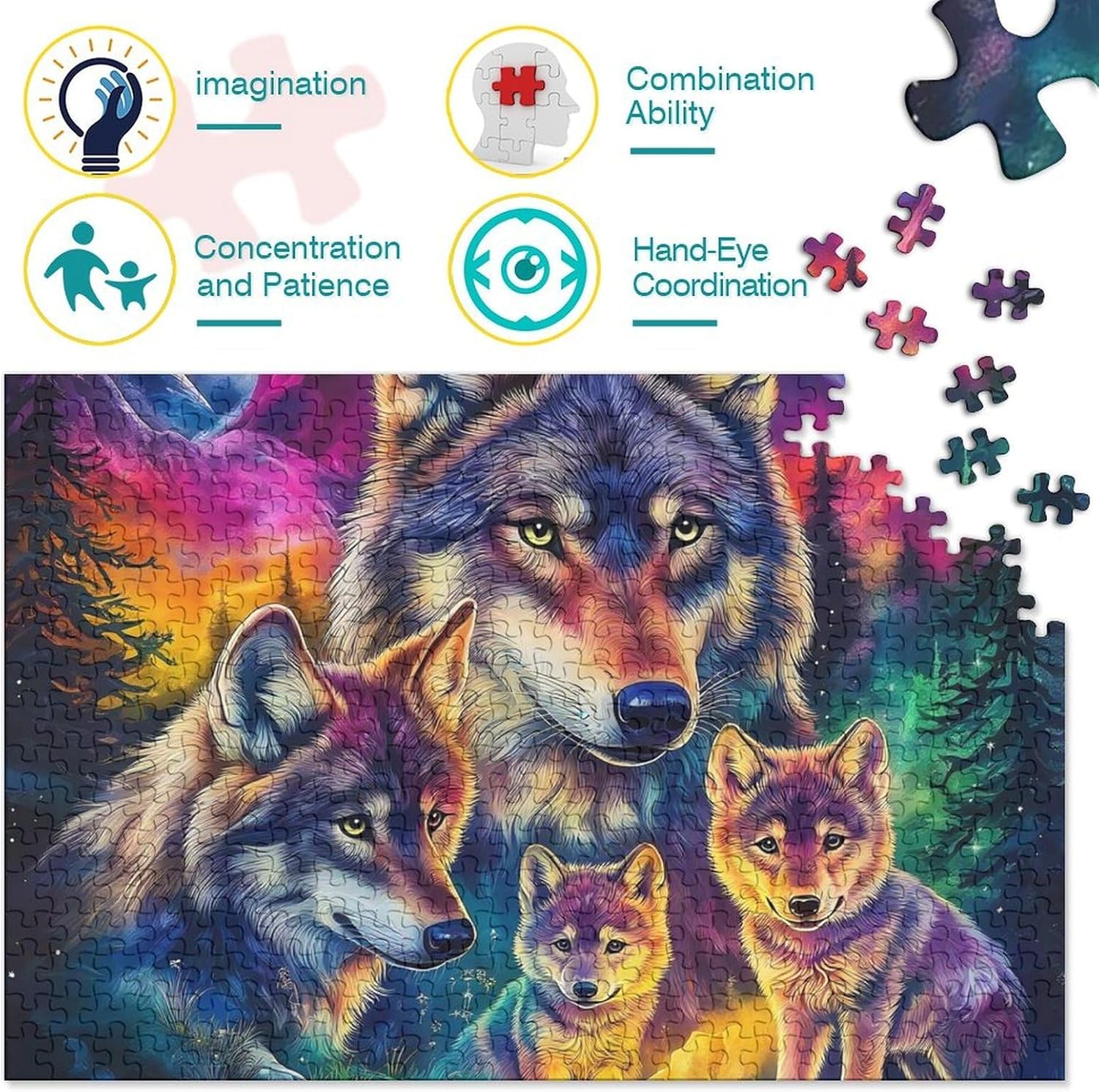 🌸GIOCHI PER ADULTI: una sfida emozionante da regalare a tutti li appassionati di puzzle e amanti dell'arte, ideale per uomo, donna o ragazzi; i puzzle aiutano a esercitare la memoria, migliorano la concentrazione e stimolano l'intuizione 🌸QUALITÀ PREMIUM: il massimo del divertimento con prodotti di altissima qualità in termini di materiali, motivi e design; realizzati in legno tagliati con fustelle fatte a mano, per un risultato impeccabile 🌸Buon regalo: il animal puzzle finito misura 70x50cm/1000pcs una volta completato. I migliori regali per ragazzi e ragazze dai 14 anni in su per compleanni o festività (Natale, Halloween, Ringraziamento, ecc.) 🌸Concediti una piacevole pausa relax! La nostra linea di puzzle da Wolf 1000 pezzi è il regalo perfetto per chi ama ritagliarsi un momento di svago e di relax mettendo alla prova le proprie abilità logiche e di concentrazione 🌸I nostri Puzzle ti offrono un'ampia scelta d'immagini capace di soddisfare i gusti di tutti: grazie alla qualità dei materiali riciclati, la robustezza e resistenza dei singoli pezzi insieme alla brillantezza dei colori, ti garantiamo un risultato impeccabile e privo di riflessi