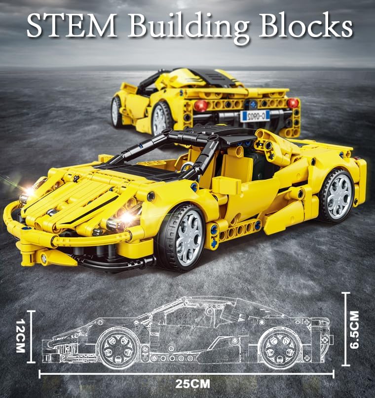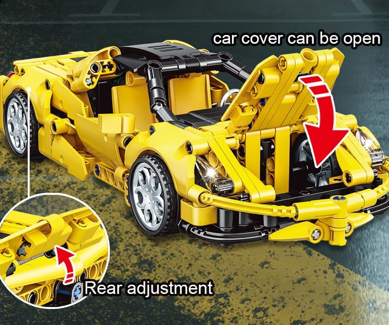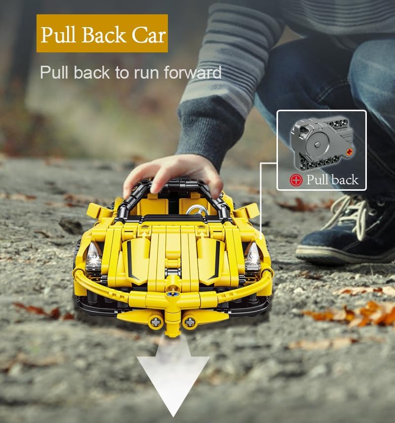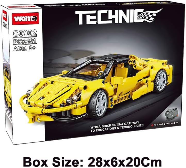 Set di mattoncini da costruzione da 391 pezzi per età 6+ Auto Technic Auto a traino - traina indietro per andare avanti Copertura apribile, Regolazione posteriore Specchietto retrovisore regolabile