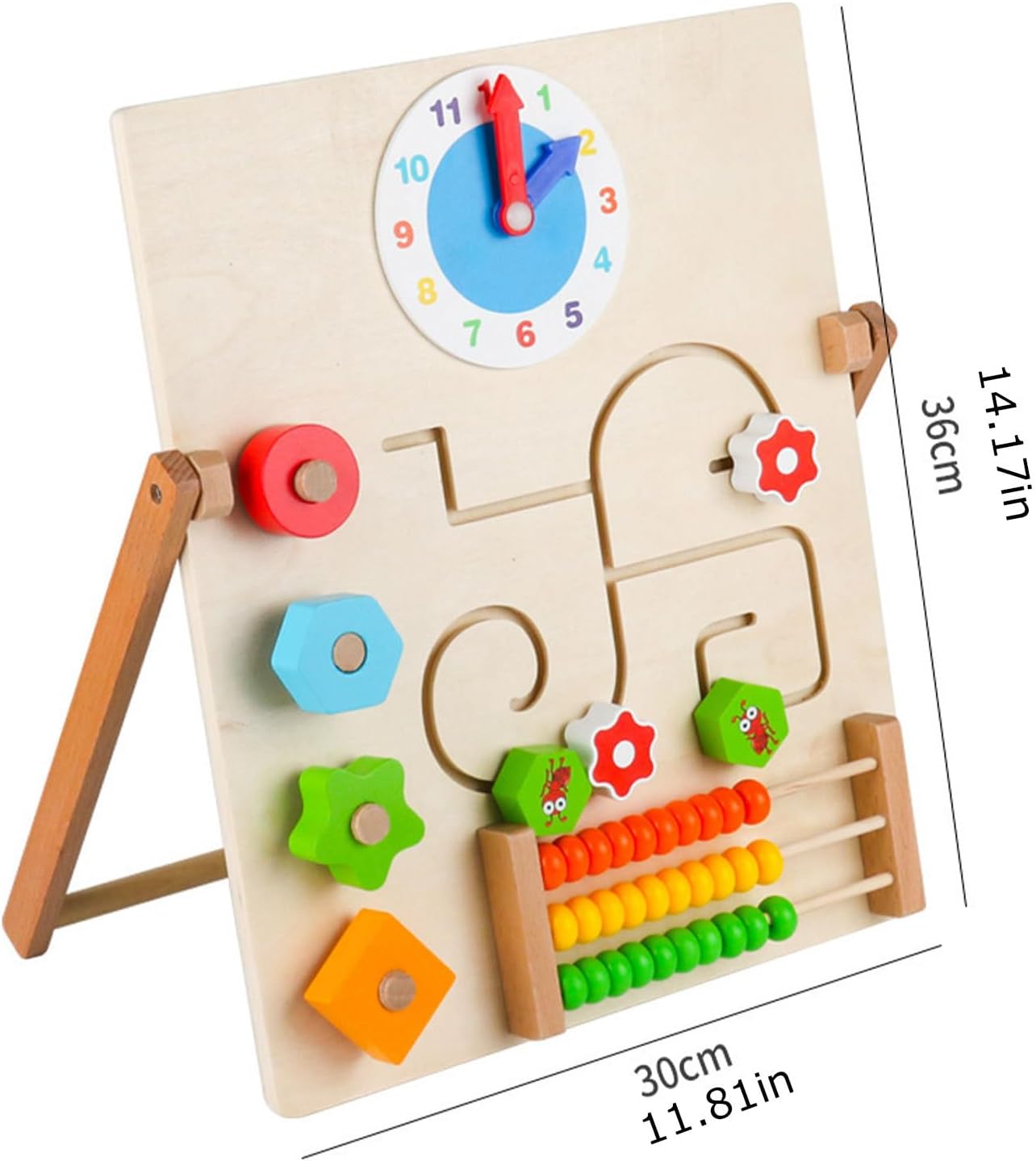 Inspired Learning: This wooden activity board is designed using principles, offering over age 3 a fun and hands-on way to develop fine motor skills, problem-solving, and time recognition with an engaging movable clock Interactive Multi-Feature Design: Packed with sensory elements such as spinners, latches, beads, and a moveable clock, this captures children's attention while keeping them constructively engaged for long periods during play or travel Sturdy Child-Safe Wood: Crafted from high-quality, durable wood with smooth edges and finishes, this sensory board is safe for small hands to explore, making it ideal for everyday play and trusted by parents and educators alike Portable and Travel-Ready: Lightweight and compact, this activity board fits easily in backpacks and travel bags, making it the perfect quiet entertainment for car rides, plane trips, waiting rooms, or anywhere you want a screen-free activity Educational and Gift-Worthy: Promote early childhood development while sparking curiosity and creativity—this beautifully crafted board makes an excellent gift for birthdays, holidays, or back-to-school surprises for young learners