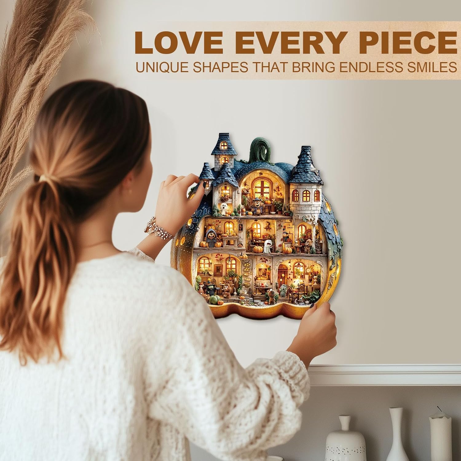 Puzzle a casa di zucca: il nostro puzzle in legno è realizzato in legno naturale. I materiali accuratamente selezionati garantiscono una lunga durata. Ogni pezzo del puzzle è lucido, liscio e senza sbavature e non danneggia le mani. 【Design unico del puzzle】: ogni puzzle in legno è accuratamente progettato dai nostri designer con forme diverse e motivi vivaci. Ottima idea regalo per Natale, compleanno, festa della mamma, festa del papà, giorno del Ringraziamento, ecc. 【Rilassante e divertente】: i puzzle sono un'attività rilassante che può liberarti dallo stress quotidiano e dalle paure. Ti aiuta a provare la gioia della creazione migliorando le tue capacità cognitive e la concentrazione. 【Puzzle per famiglia】: i puzzle in legno sono ideali per la partecipazione della famiglia. Le famiglie possono risolvere puzzle insieme per rafforzare le loro relazioni e promuovere la comunicazione e la collaborazione. 【Servizio clienti】: se avete domande sui nostri puzzle, non esitate a contattarci. Vi risponderemo entro 24 ore. Se pezzi del puzzle mancano o sono rotti, vi preghiamo di contattarci per risolvere il problema.