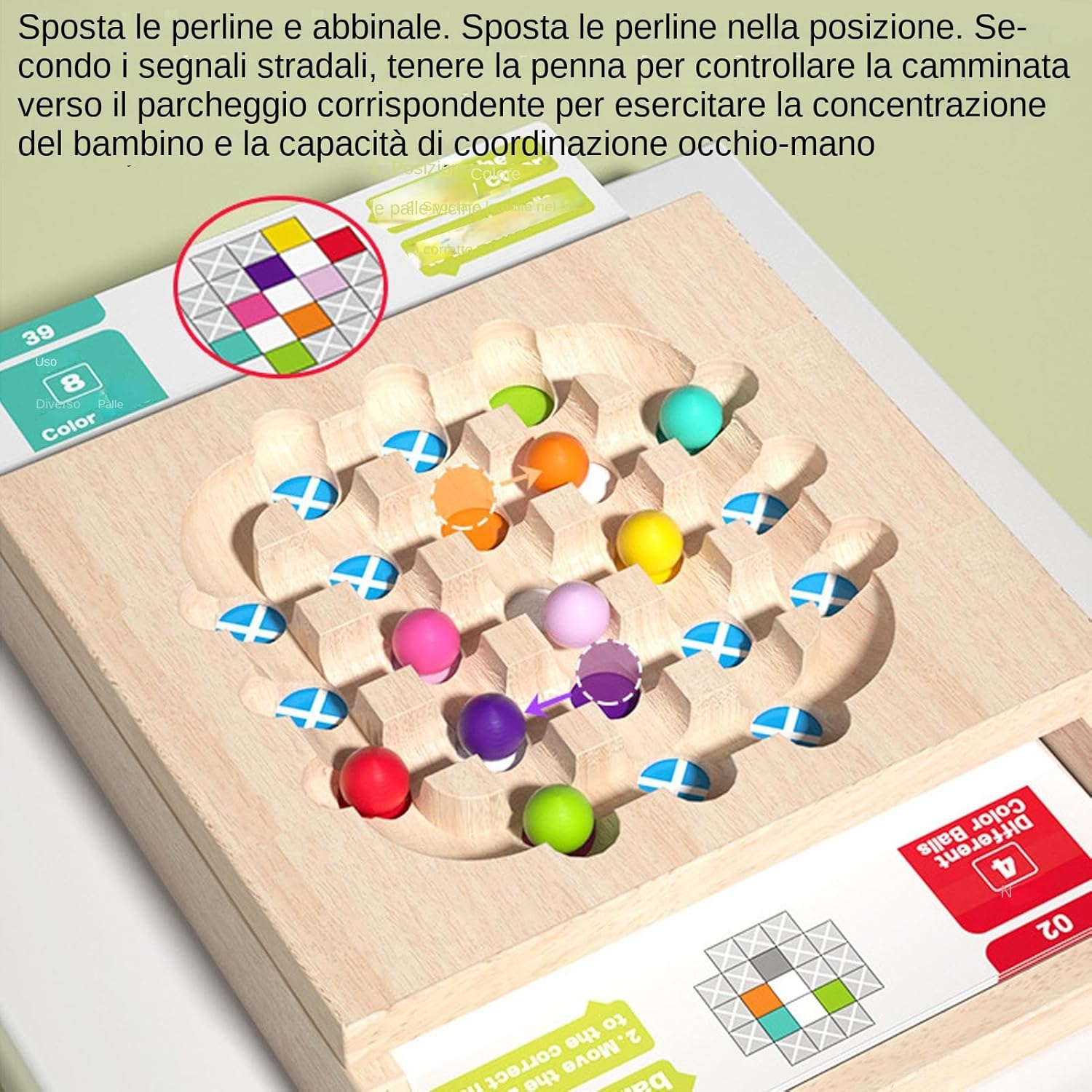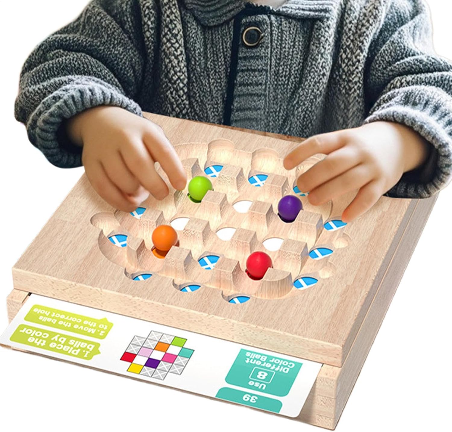 Develops Logical Thinking: Encourages children to observe, analyze, and solve matching challenges by placing colorful beads into designated slots, fostering early problem-solving and critical thinking skills Fine Motor Skill Training: Strengthens finger dexterity, grip control, and hand-eye coordination as kids pick up, sort, and place beads using tweezers or hands—perfect for preschoolers and early learners Bright Colors for Visual Learning: Includes a variety of vibrant, beads that attract attention and help children learn to identify and categorize colors while enhancing their visual recognition skills Safe, Wooden Board: Crafted from smooth, high-quality wood with rounded edges and water-based paint, this board game ensures safe, long-lasting play for in home, , or classroom settings Inspired Education Tool: Ideal for learning environments and early education programs, this game promotes play and guided activities that boost focus and early cognitive growth
